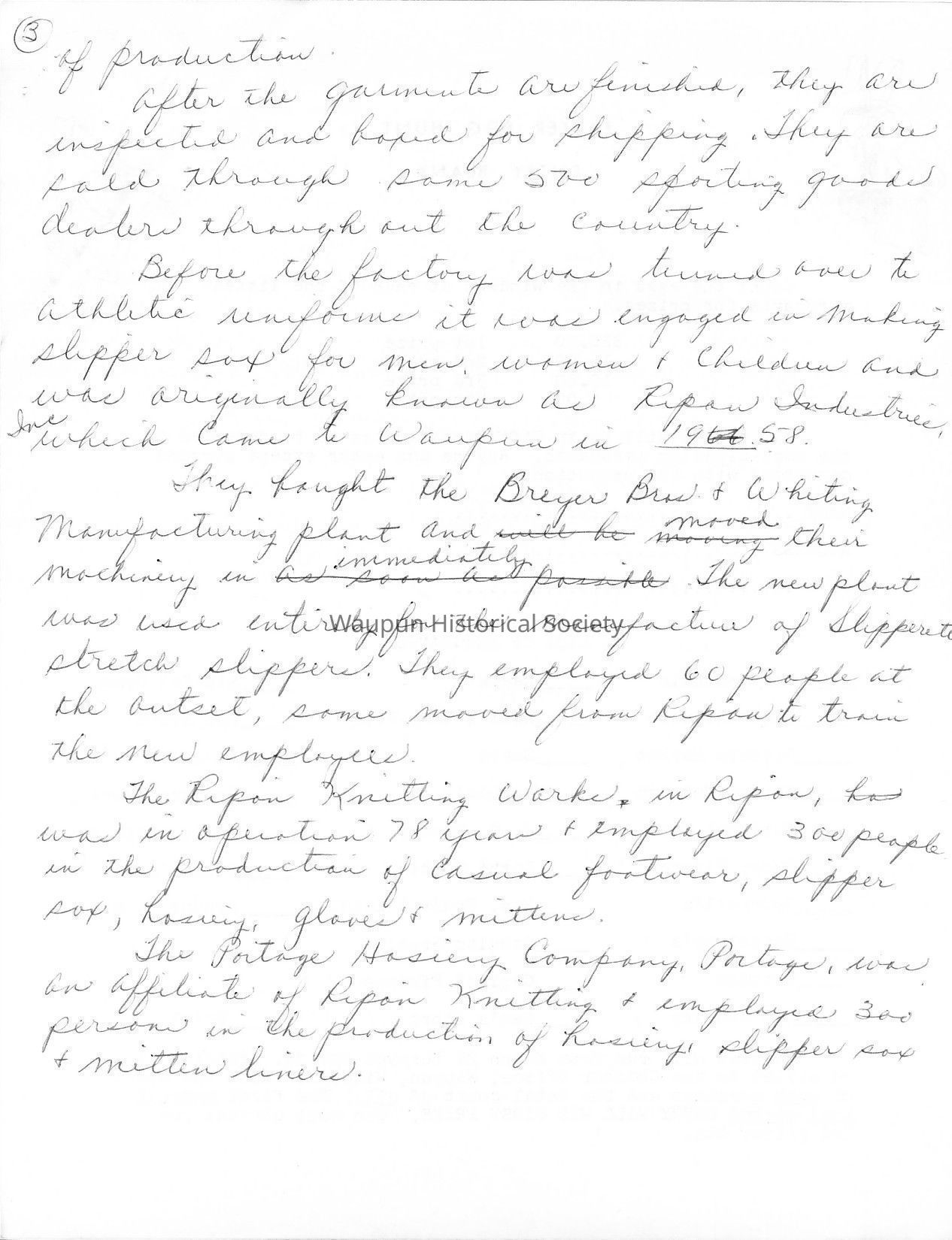 Before the factory was turned over to athletic uniforms it was engaged in making slipper sox for men, women & children and was originally known as Ripon Industries, Inc. Which came to Waupun in 1958.