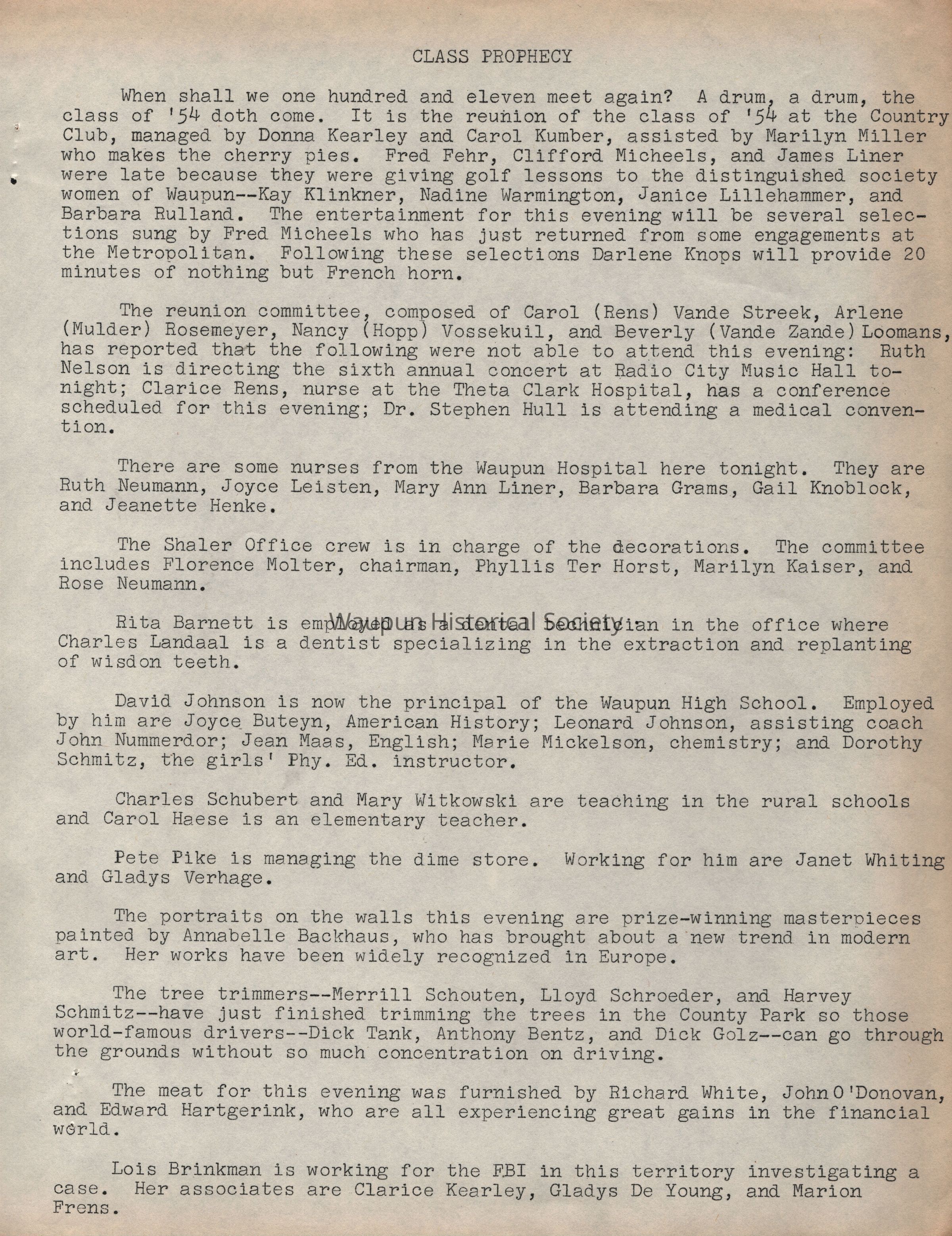 School District, Class Prophecy, 1954, Garland Lichtenberg