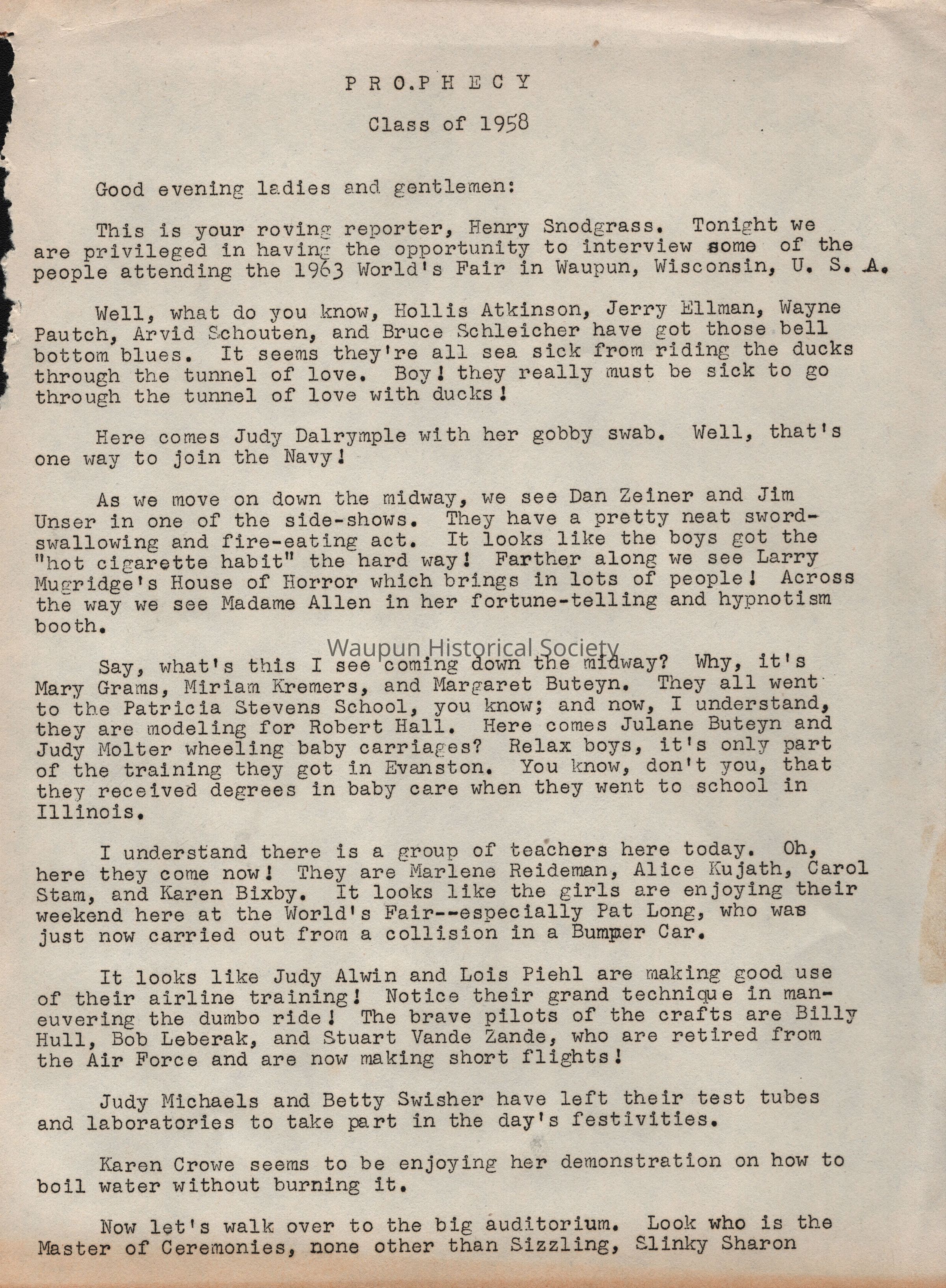 School District, Class Prophecy, 1958, Garland Lichtenberg