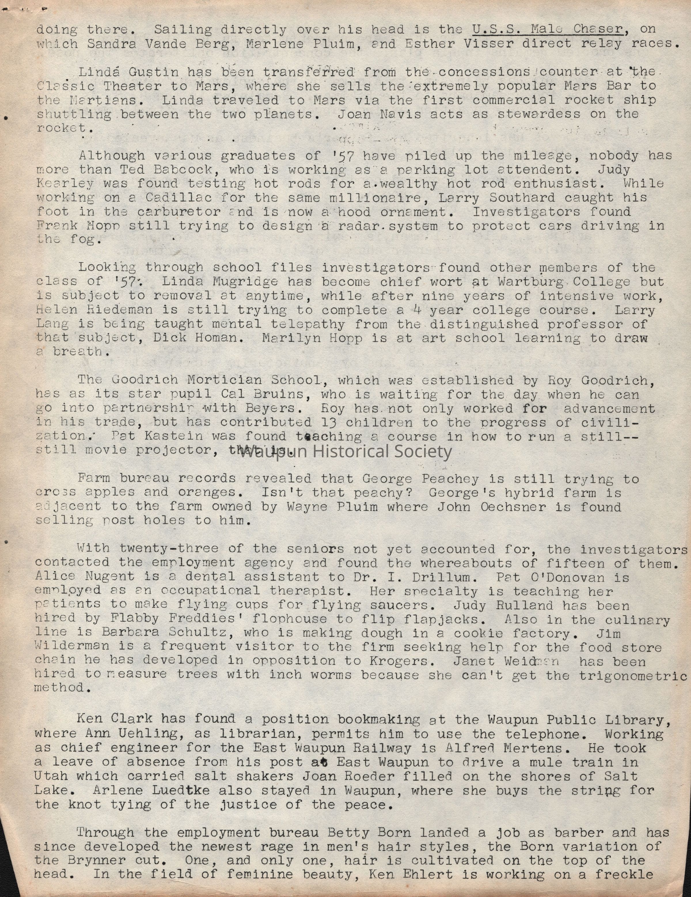 School District, Class Prophesy, 1957, Garland Lichtenberg