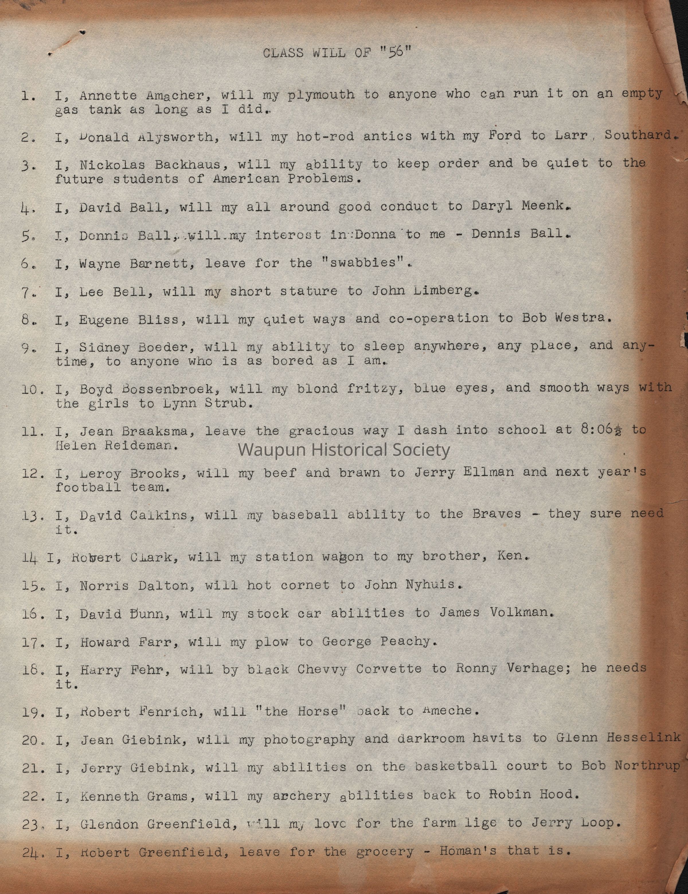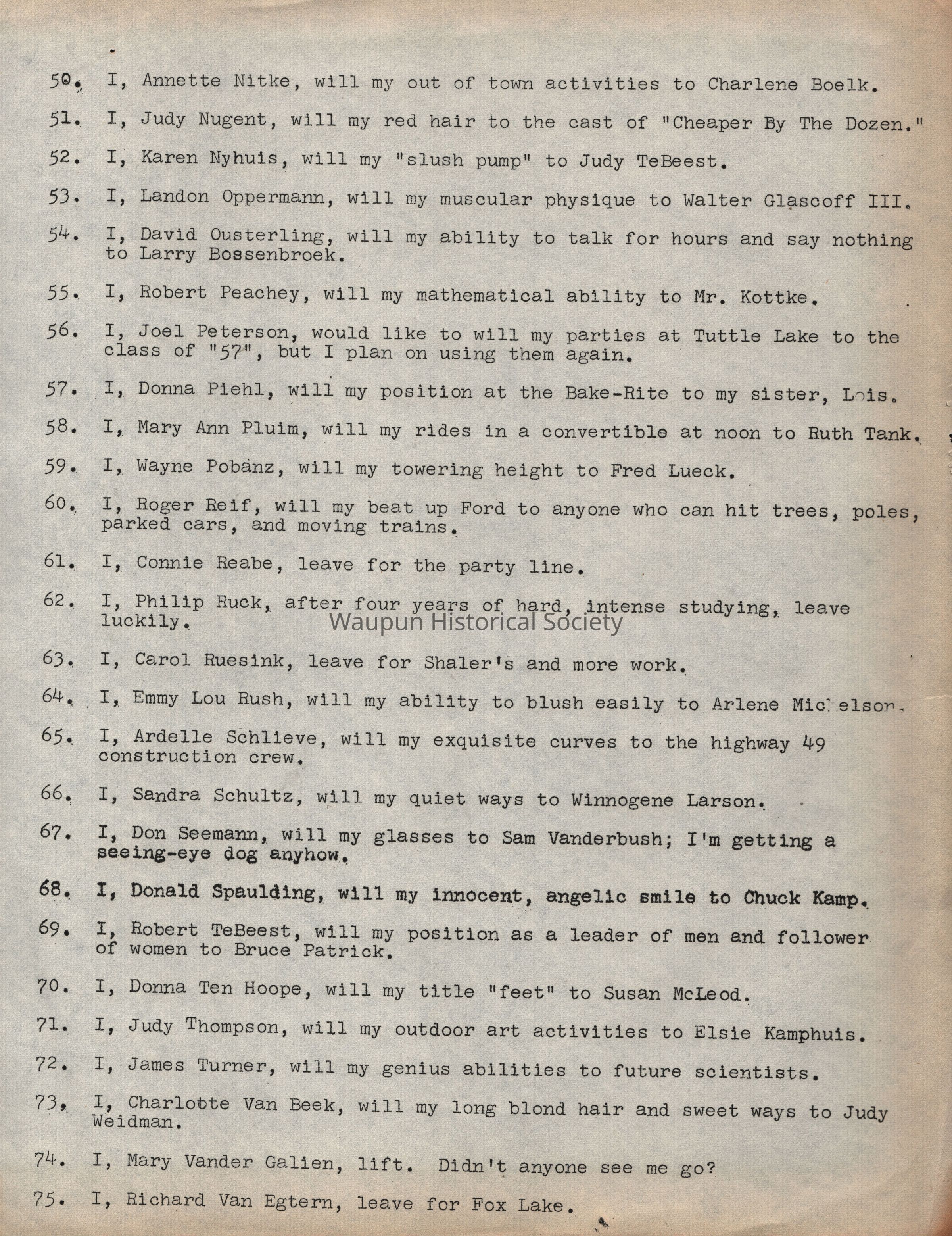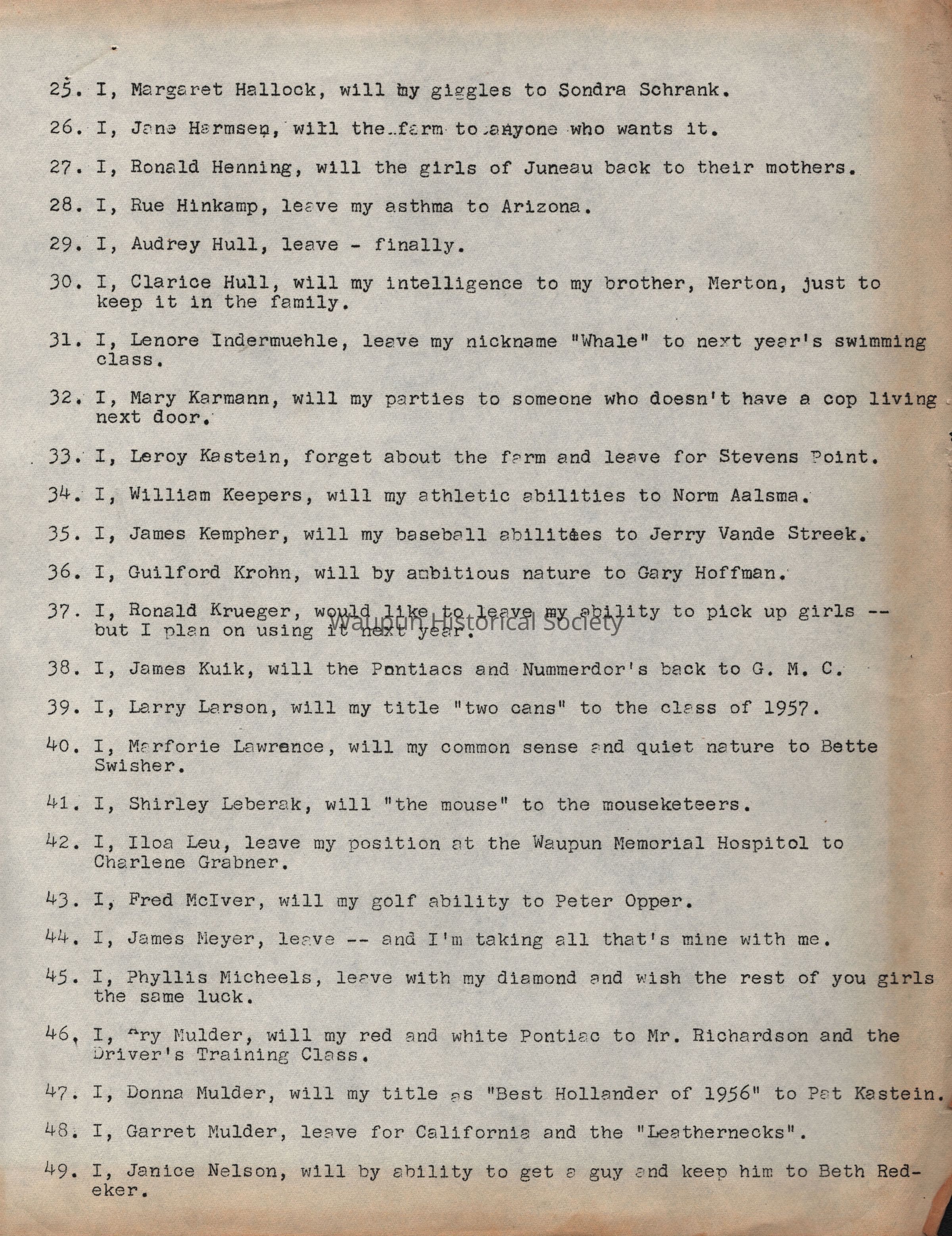 School District, Class Will, 1956, Garland Lichtenberg