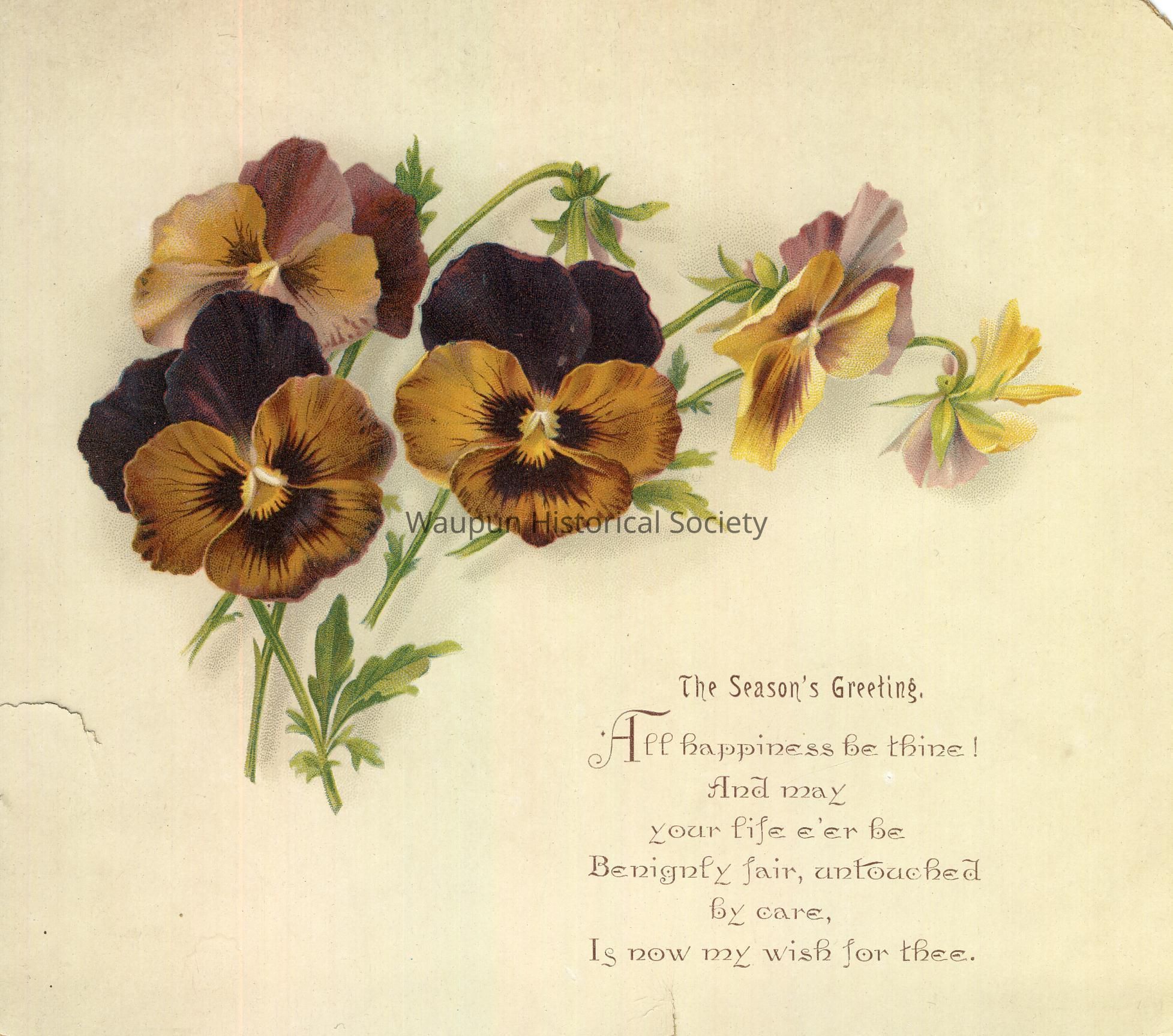 "The Season's Greeting. All Happiness be thine! And may your life e'er be benignly fair, untouched by care, is now my wish for thee."