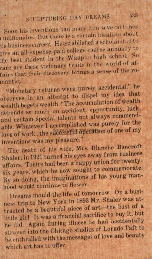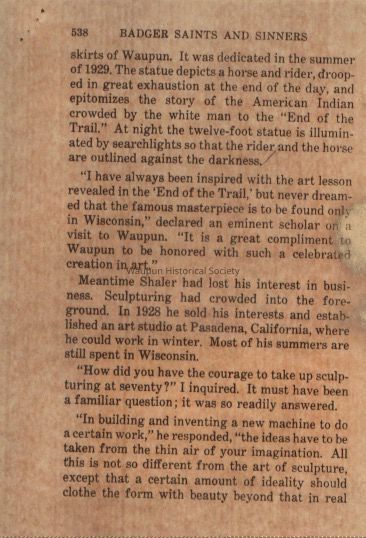 Section, Badger Saints and Sinners, Sculpturing Day Dreams, Clarence Shaler