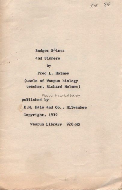 Badger Saints and Sinners, 1939, by Fred L Holmes, Sculpturing Day Dreams, Clarence Shaler