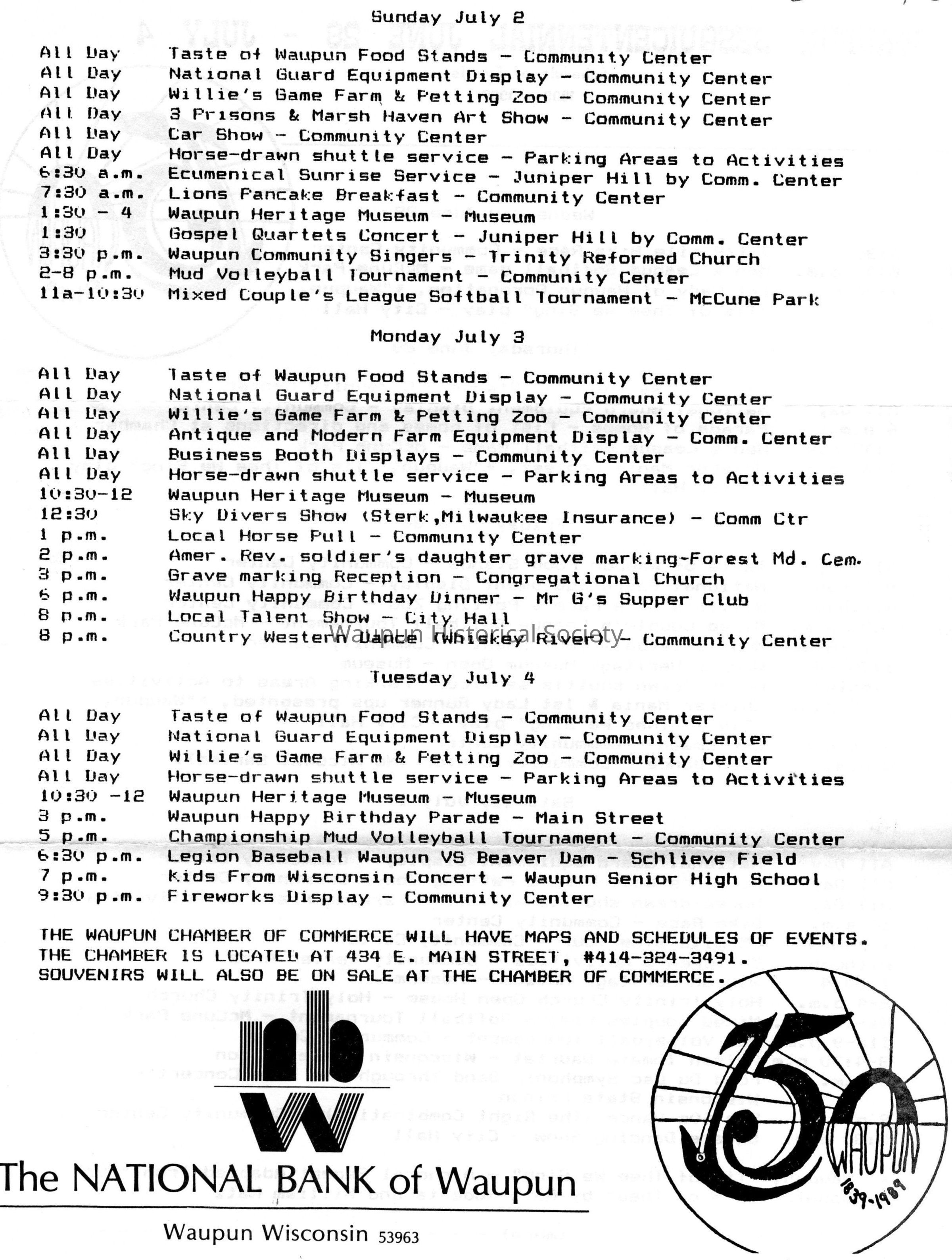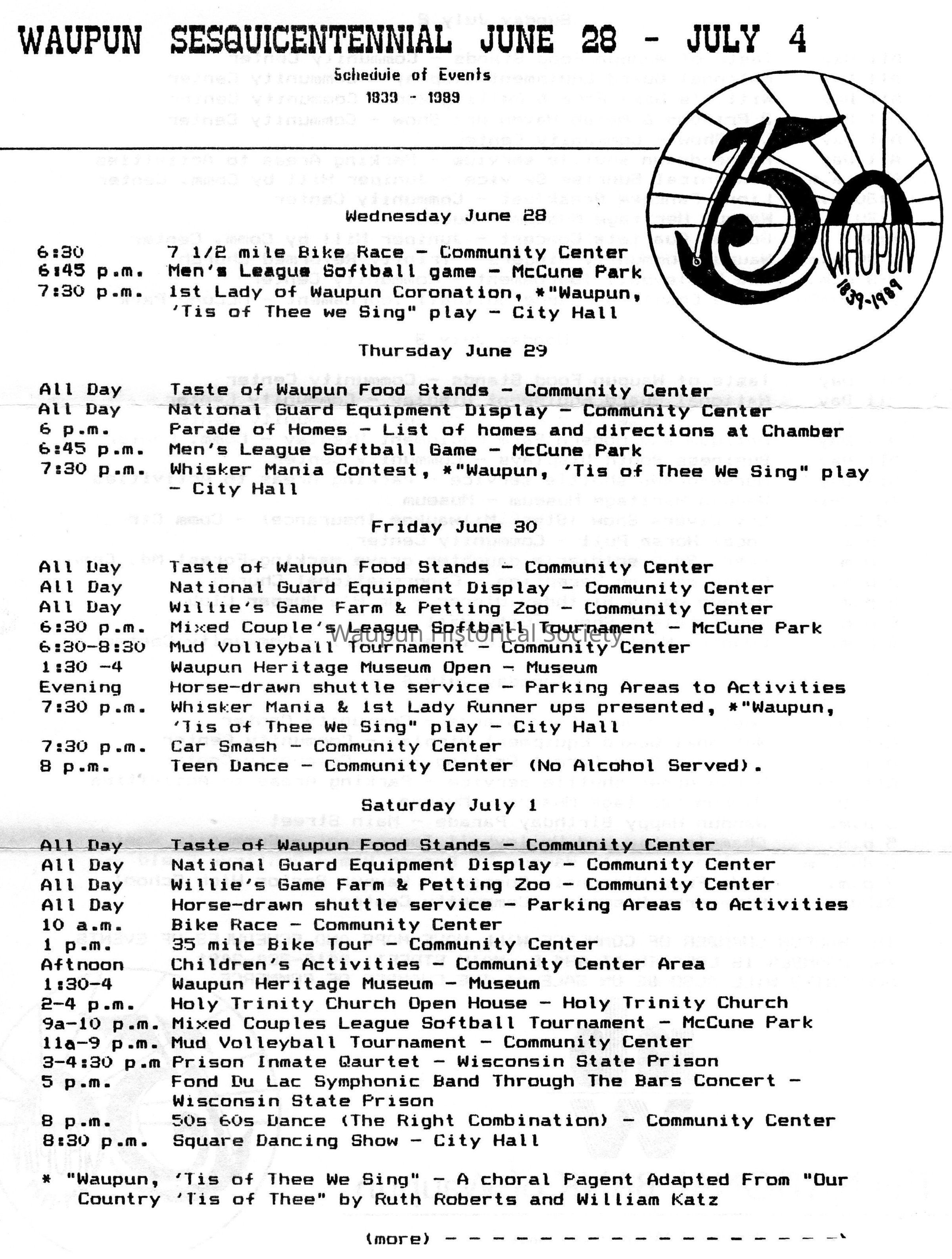 WAUPUN SESQUICENTENNIAL JUNE 20 - JULY 4