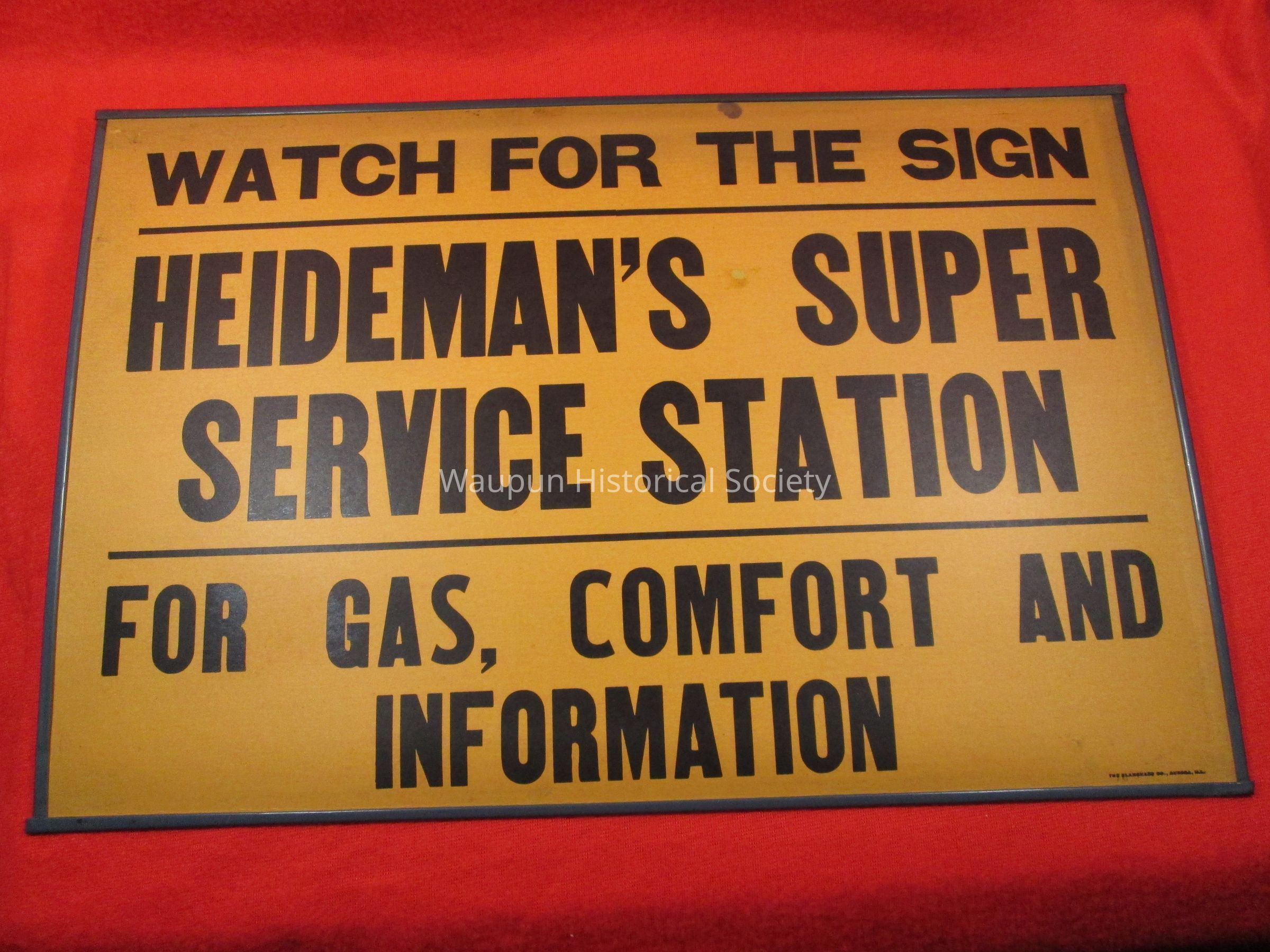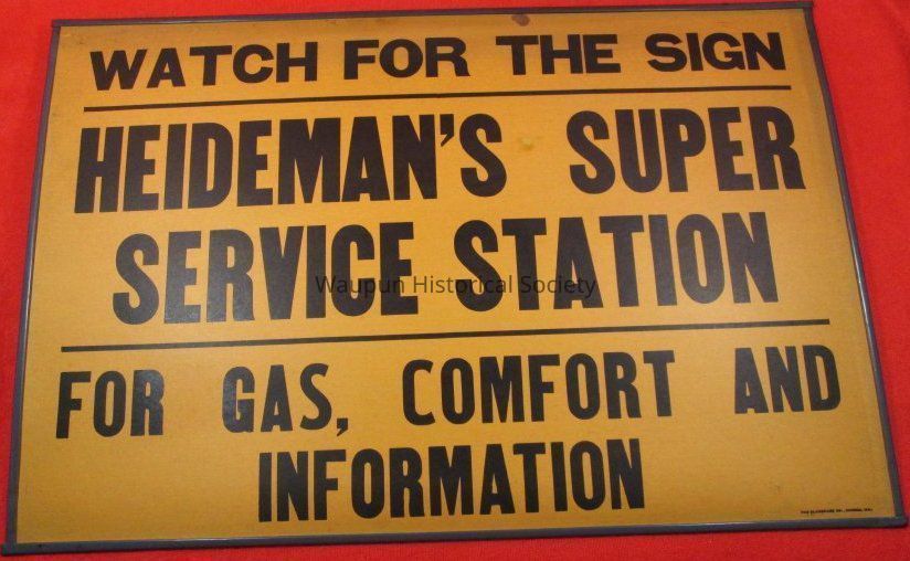 WATCH FOR THE SIGN -------- HEIDEMAN'S SUPER SERVICE STATION ------For Gas, Comfort and InformationAcquisition