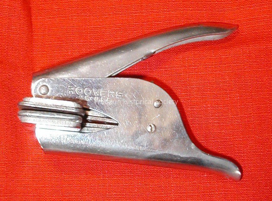 A marking stamp for the Waupun Public Library. It has Roovers N. Y. - U. S. A . on the stamp. It embosses paper with "Waupun Public Library"Acquisition