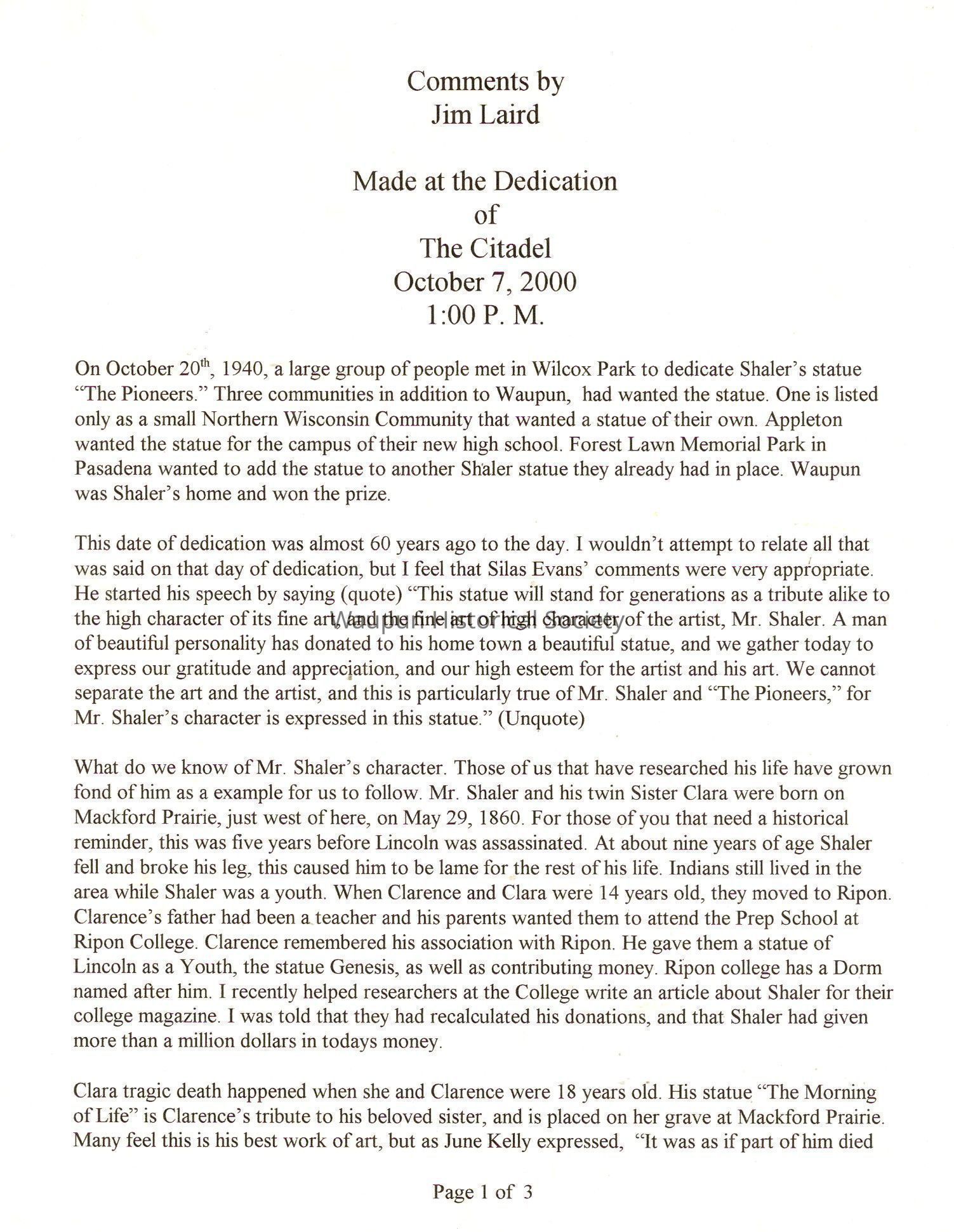 Speech, Dedication of The Citadel, James LairdEntry/Object ID