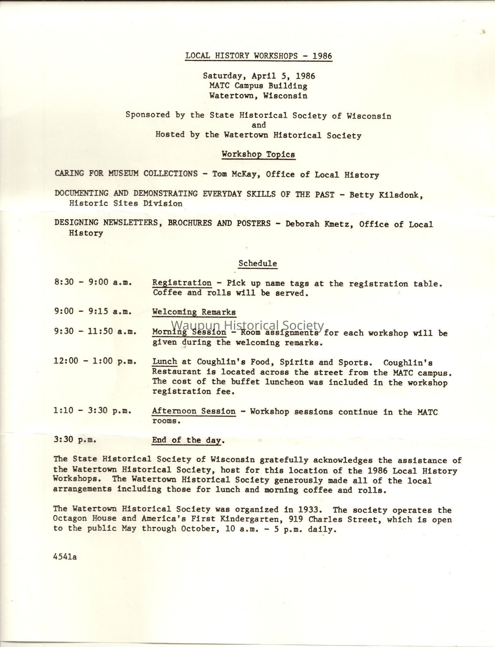 Waupun Historical Society, Local History Workshop, 1986Entry/Object ID