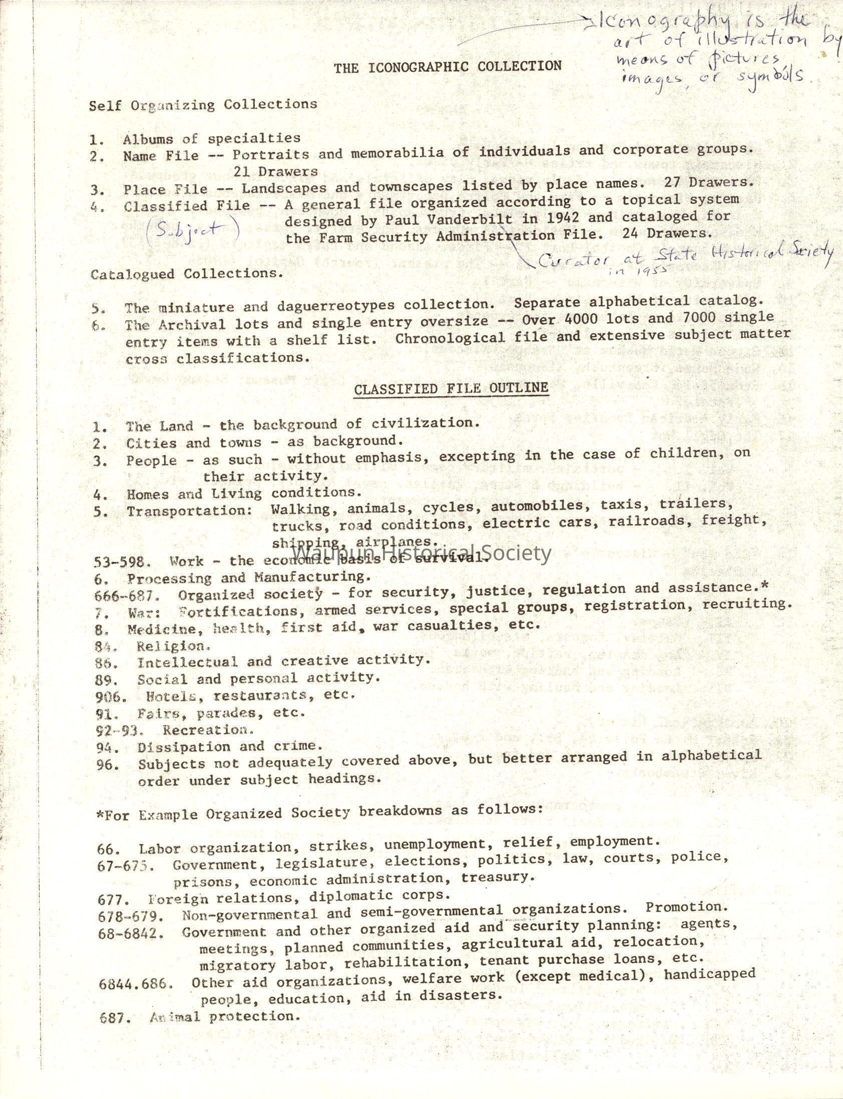 6. The Archival lots and single entry oversize -- Over 4000 lots and 7000 single entry items with a shelf list. Chronological file and extensive subject matter cross classifications.