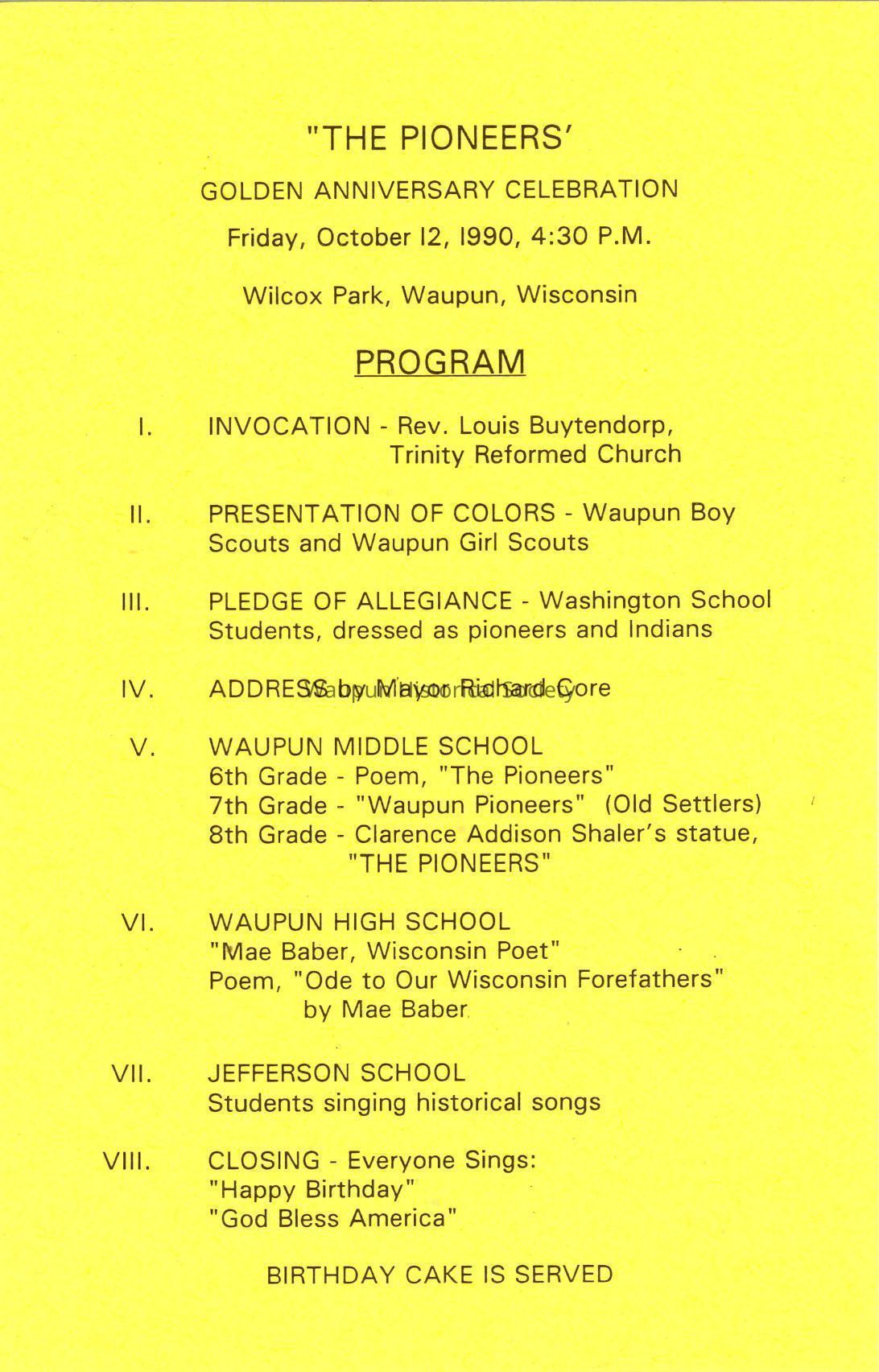 Program, The PIONEERS, Golden Anniversary CelebrationEntry/Object ID