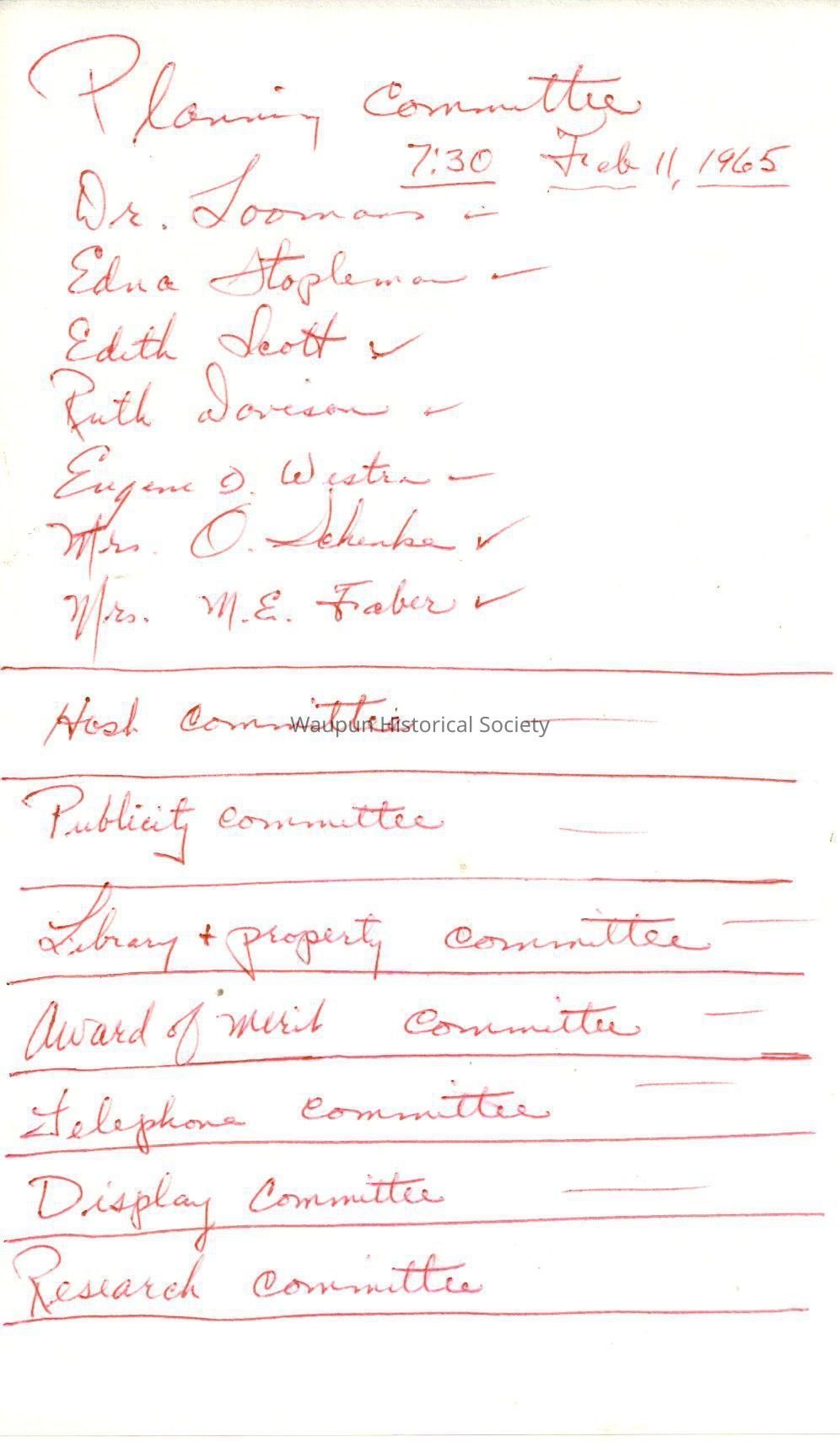 Waupun Historical Society, The Planning Committee, New ListEntry/Object ID
