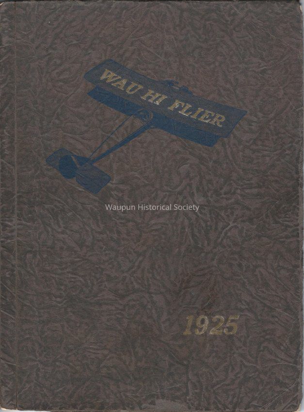 1925 Waupun high school year book "Wau-Hi-Flier", Grayish brown cover with blue design and gold print.white pages with black print and photographsAcquisition