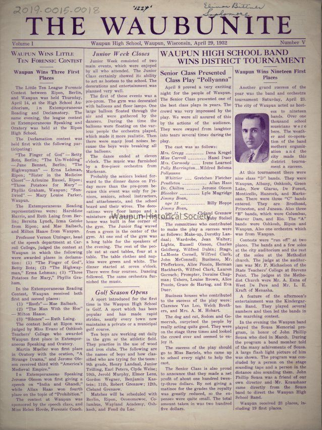 THE WAUBUNITE NEWS (April 29 1932) Waupun H.S newspaperAcquisition