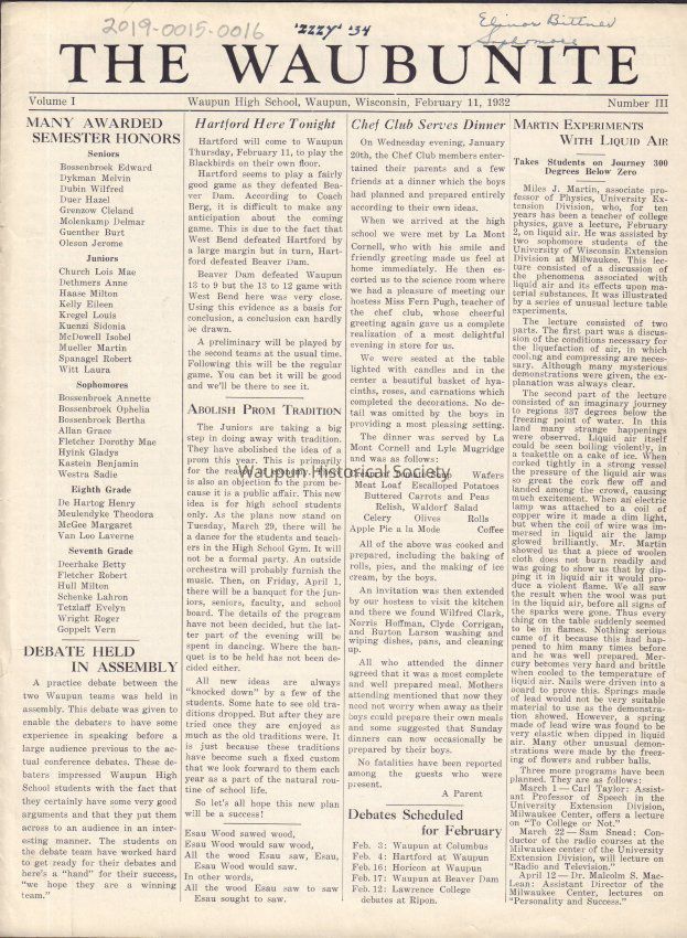THE WAUBUNITE NEWS (FEB 11 1932) Waupun H.S newapaperEntry/Object ID