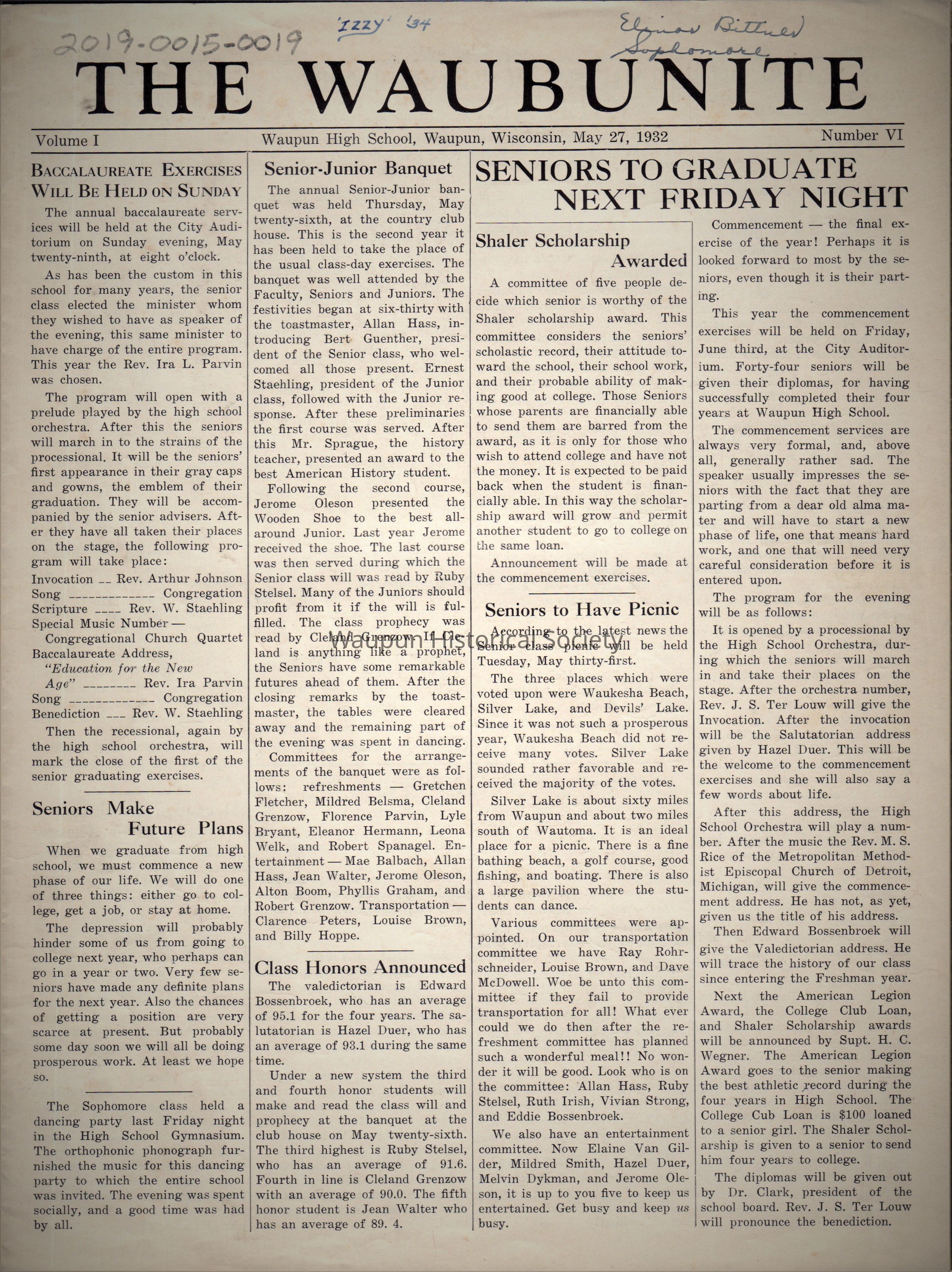 THE WAUBUNITE NEWS (May 27 1932) Waupun H.S newspaperAcquisition