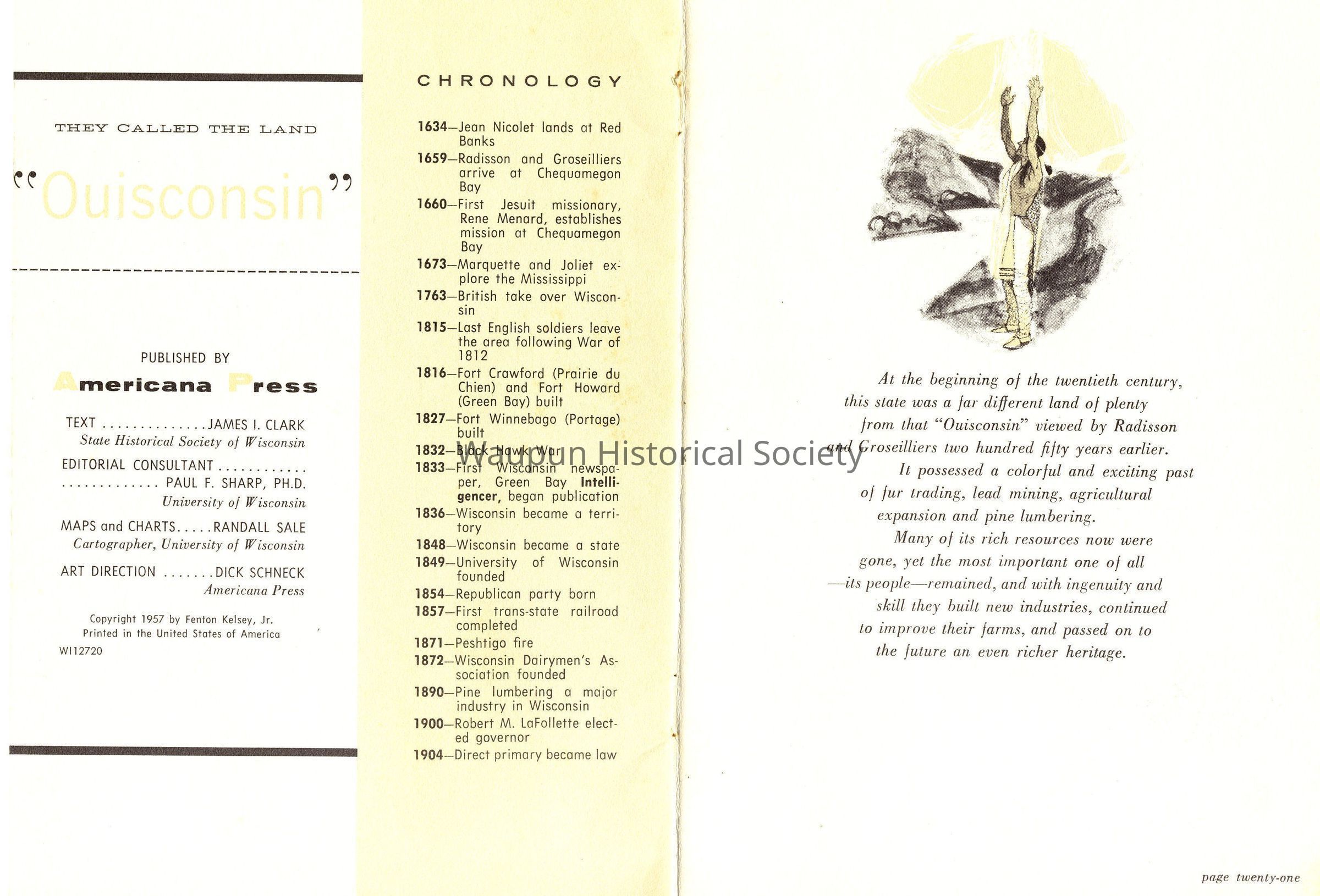 Extended Description: They Called The Land "Ouisconsin" Published 1957