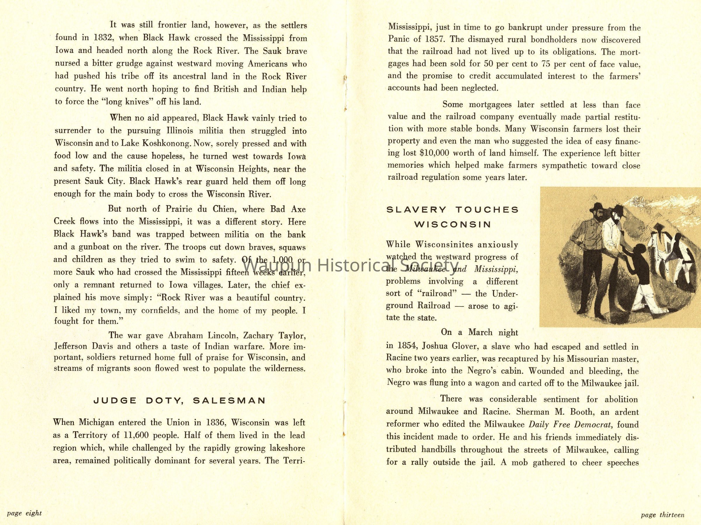 While Wisconsinites anxiously watched the westward progress of the Milwaukee and Mississippi, problems involving a different sort of "railroad" - the Underground Railroad - arose to agitate the state.