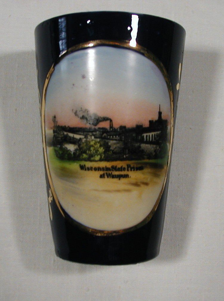 Cup with "Wisconsin State Prison at Waupun" on it. On the bottom it indicates "Wheelock, Dresden, Germany."Acquisition
