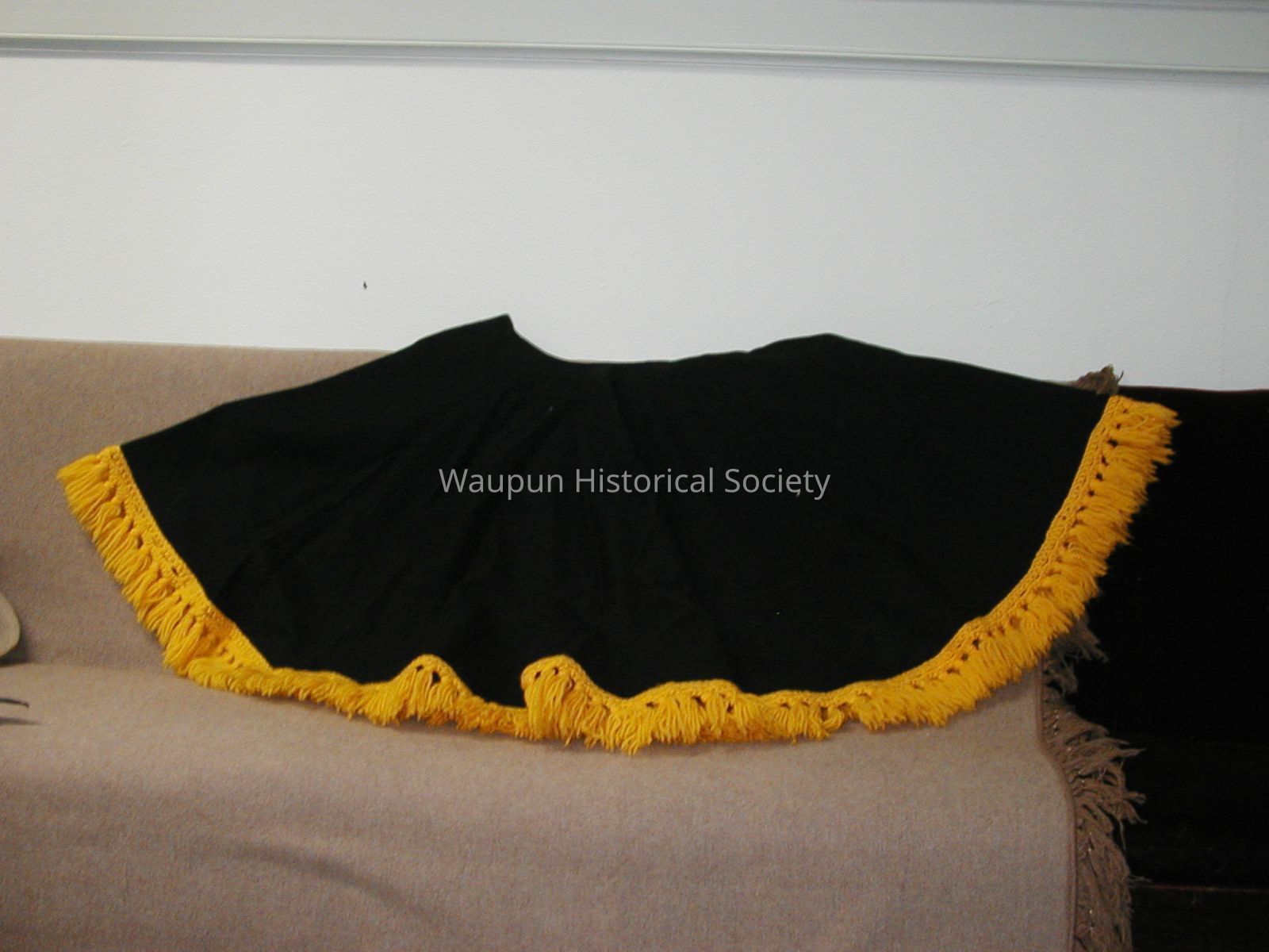 There is also a skirt of black wool and gold fringe with no markings.Acquisition