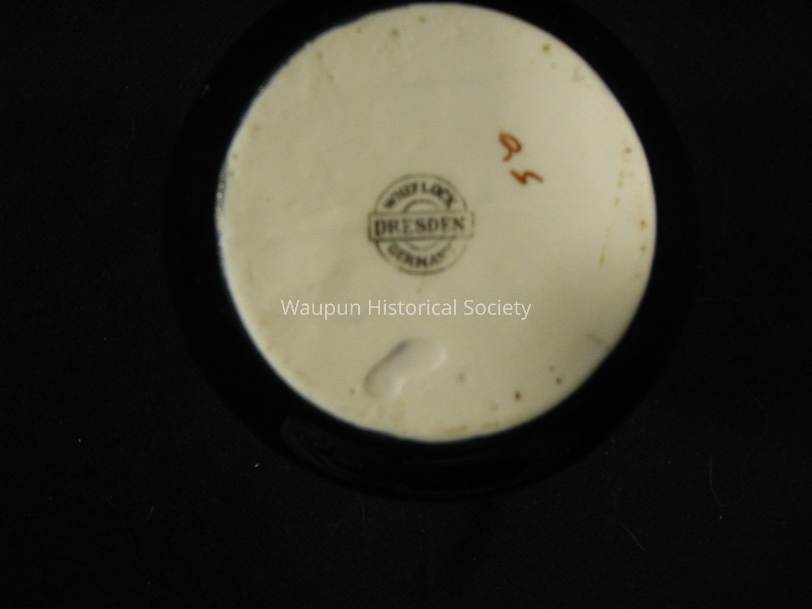 Vase from "Wisconsin State Prison at Waupun." Written on the bottom is "Whellock, Dresden, Germany."Acquisition