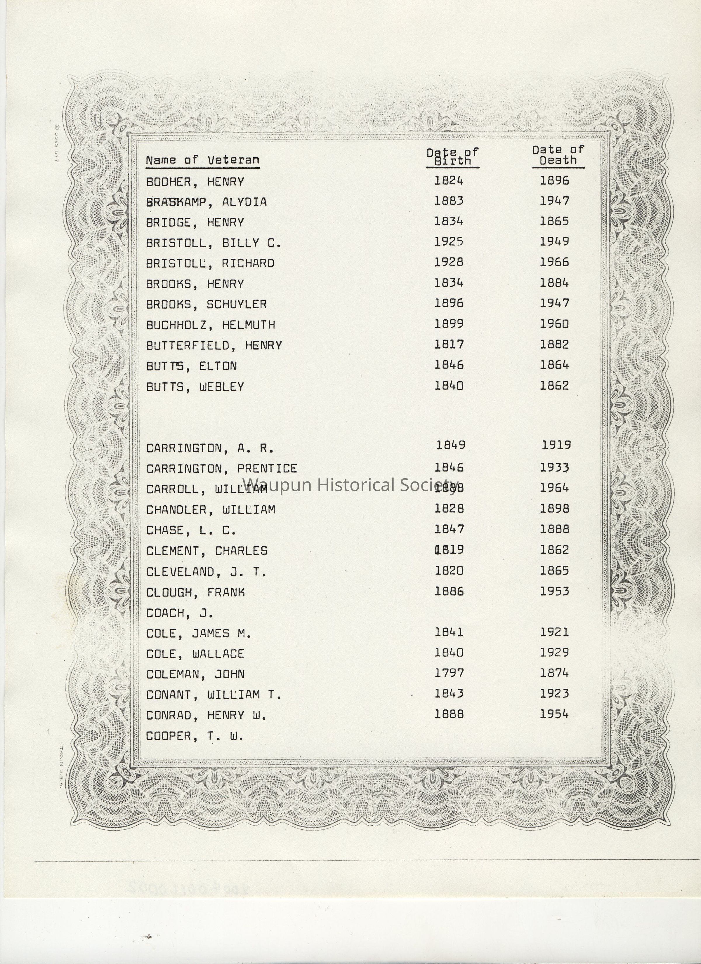 Veterans Buried at Forest Mound Cemetery: Waupun, Wisconsin. Page 2.