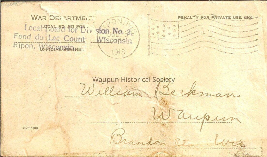 Postmarked: RIPON, WIS. JUL 25, 1918, 7 P.M.
