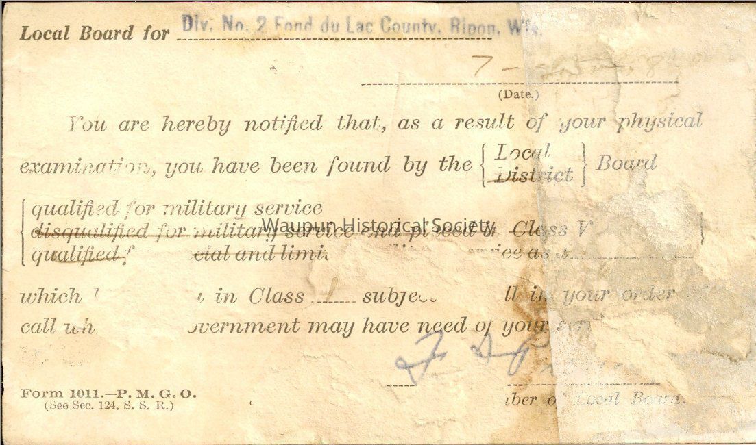 You are hereby notified that, as a result of your physical emamination, you have been found by the {Local, District} Local Board {qualified for military service.