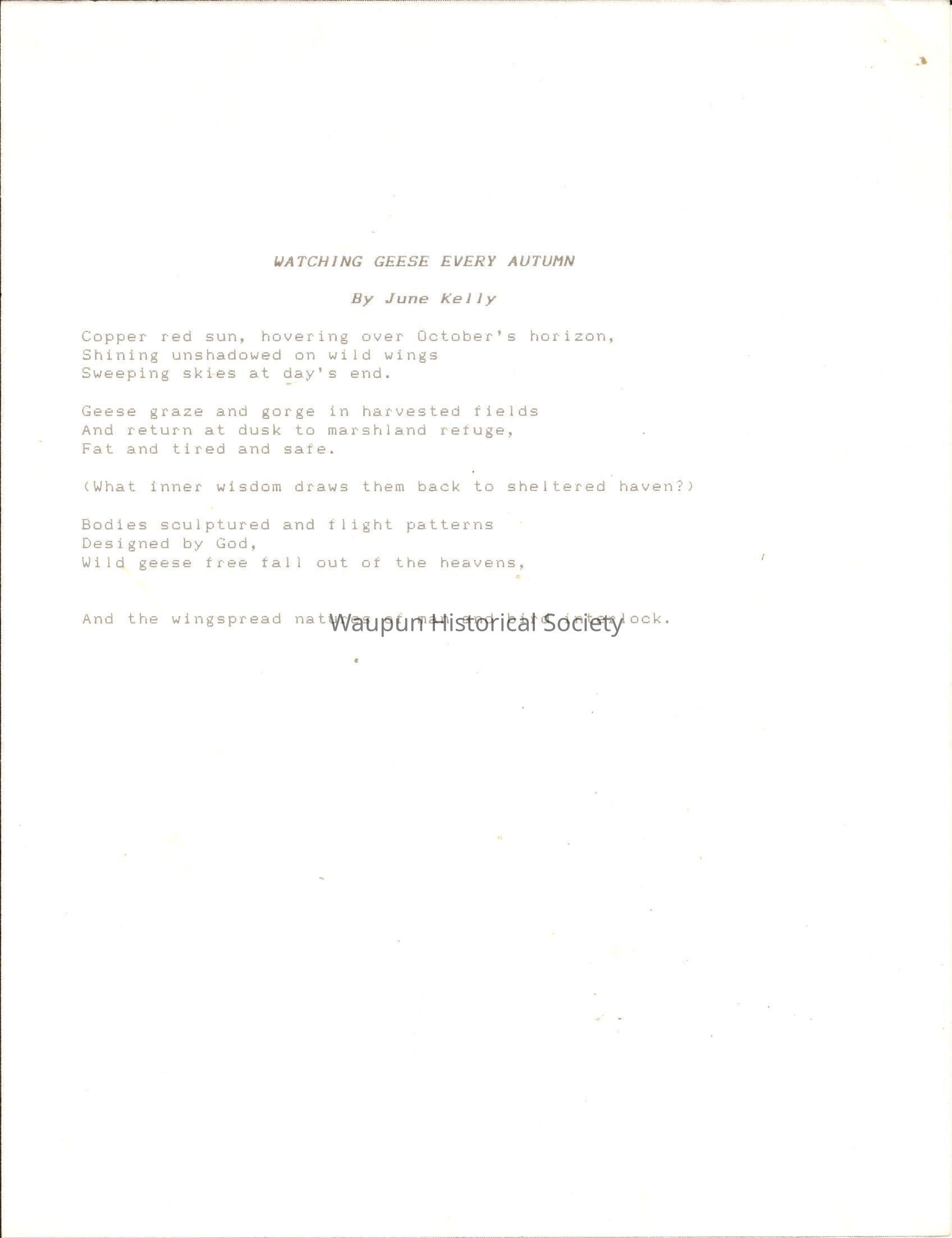 Poem, Watching Geese Every Autumn, June KellyEntry/Object ID