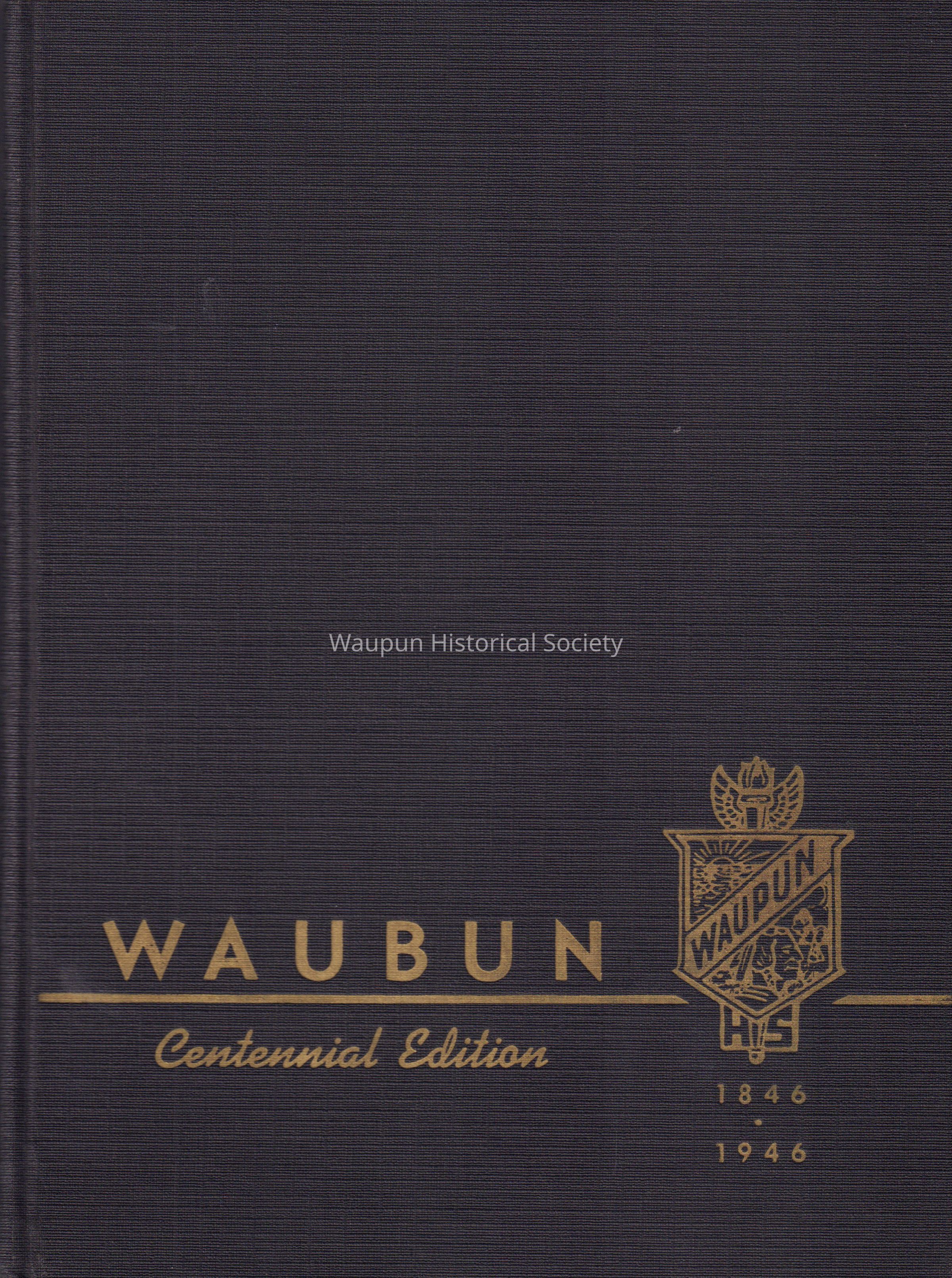 Waubun 1946 yearbook /brown cover/gold print on front/ white pages/black printing on inside/58 pagesAcquisition