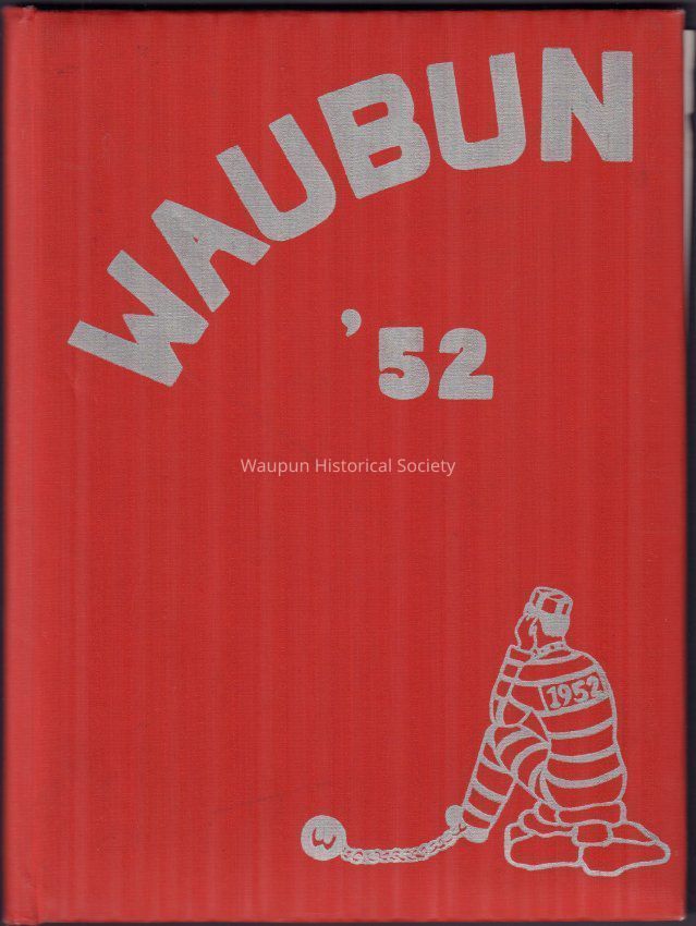 Waubun 1952 yearbook /red&silver cover /white pages /black PRINTING inside 63 pagesAcquisition