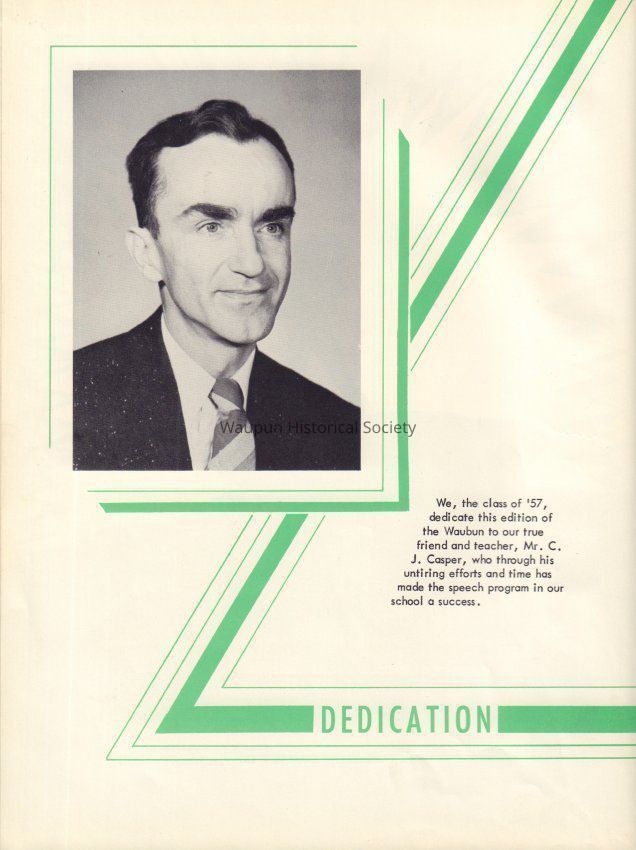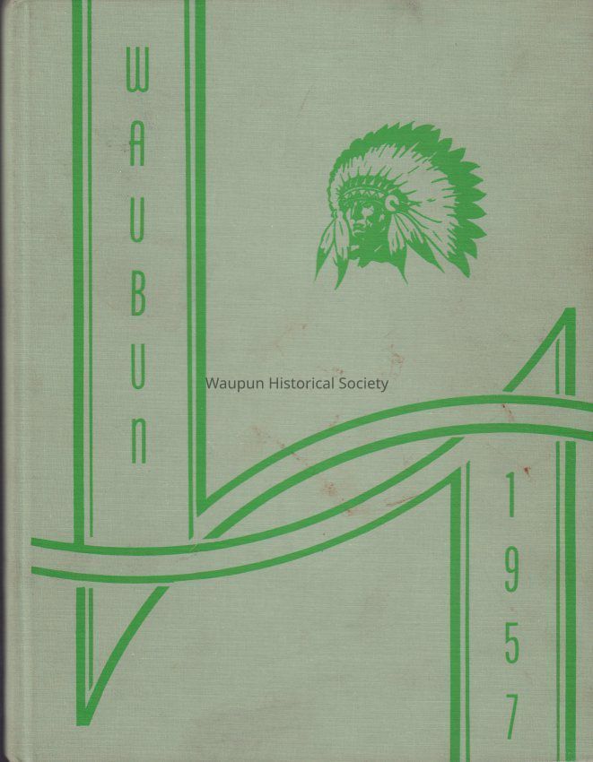 Waubun 1957 yearbook /green cover /green print /white pages green trim & black printing inside / unknown pagesAcquisition