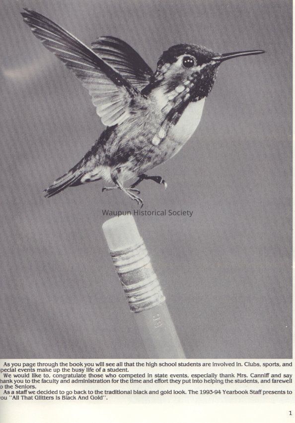 Waubun 1994 (Waupun H.S yearbook) black&gold cover /white pages /black printing inside 143 pagesAcquisition