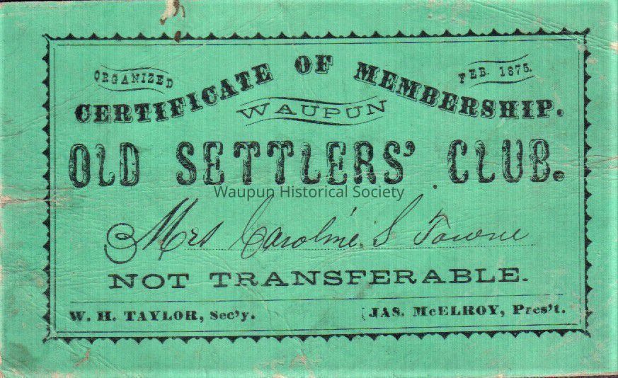 Waupun (Old Settler's Club) Organized (Feb 1875)