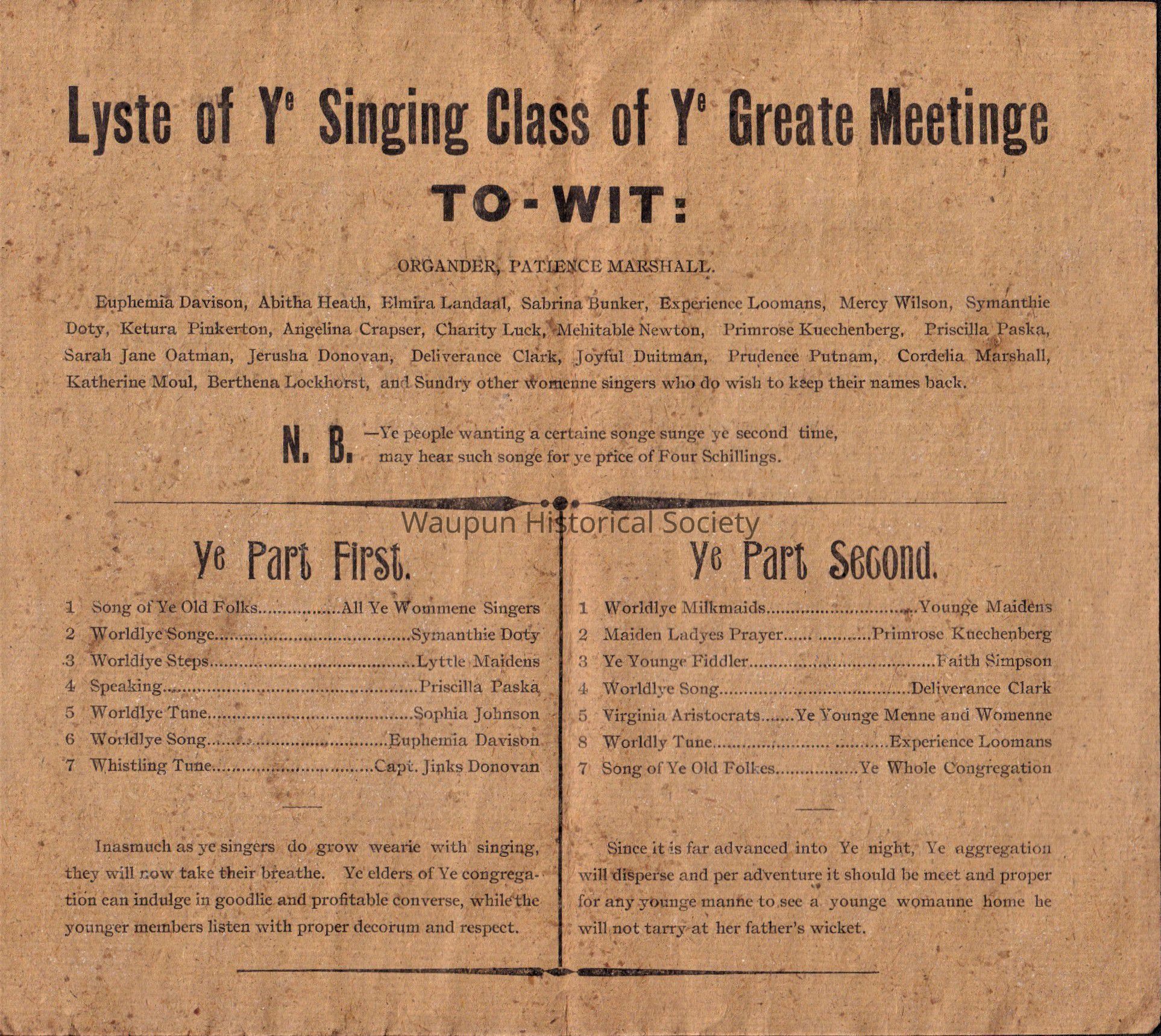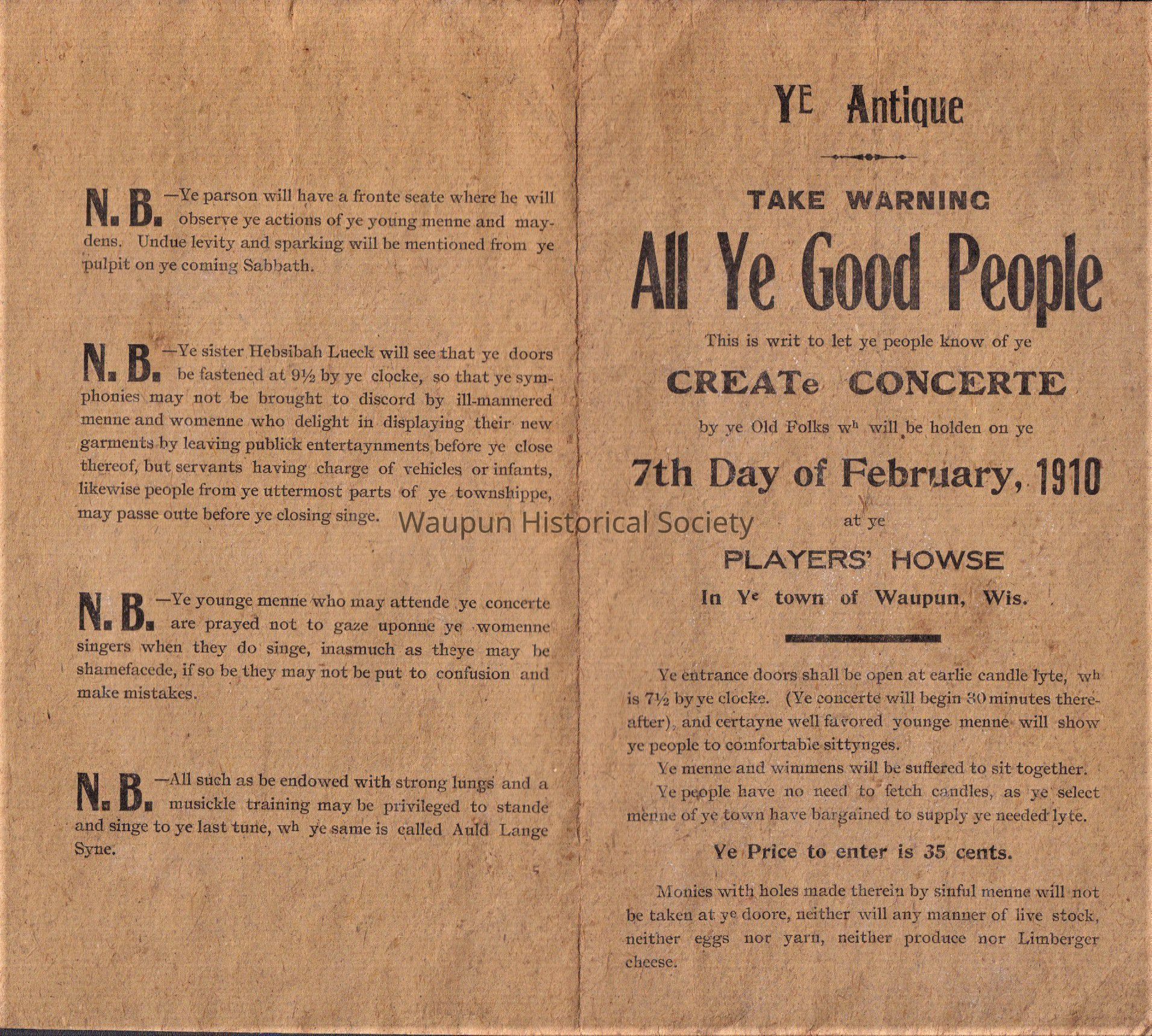 Waupun, Players Howse "All Ye Good People" (Feb 7 1910)Acquisition