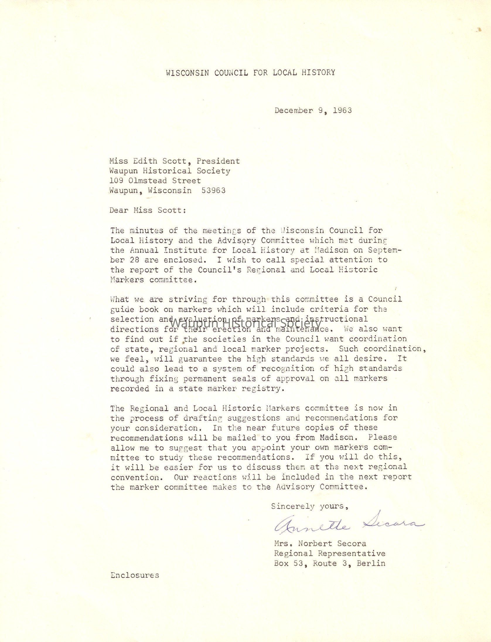 Waupun Historical Society, Wisconsin Council for Local History, 1963Entry/Object ID