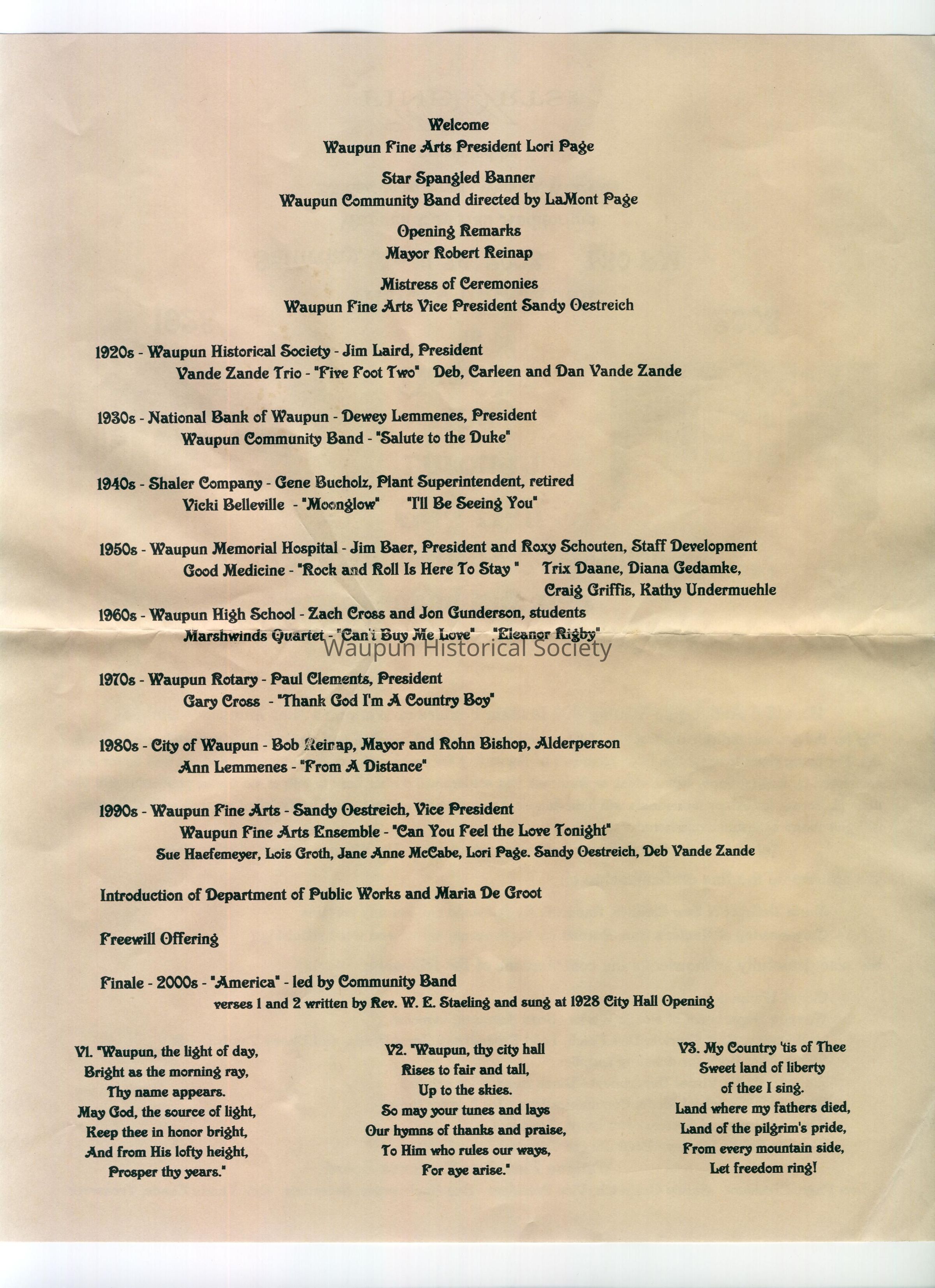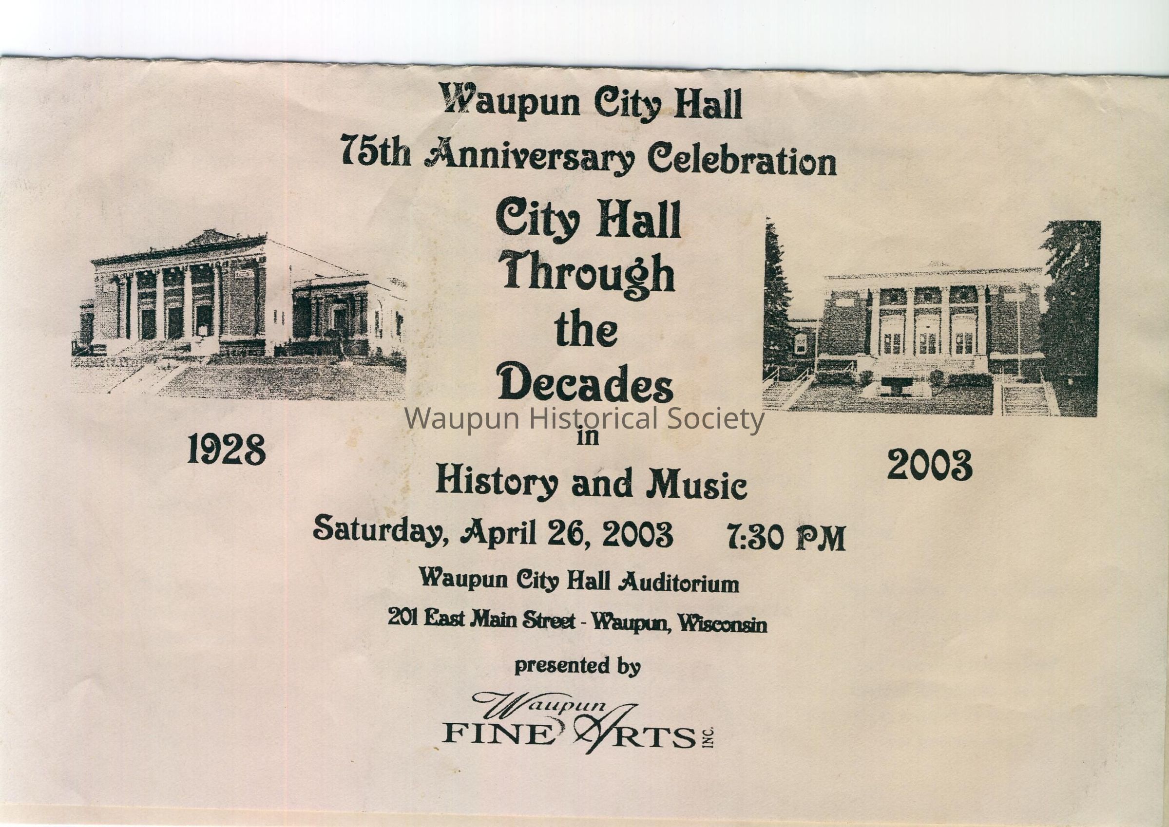 Waupun City Hall and Auditorium, 75th AnniversaryEntry/Object ID