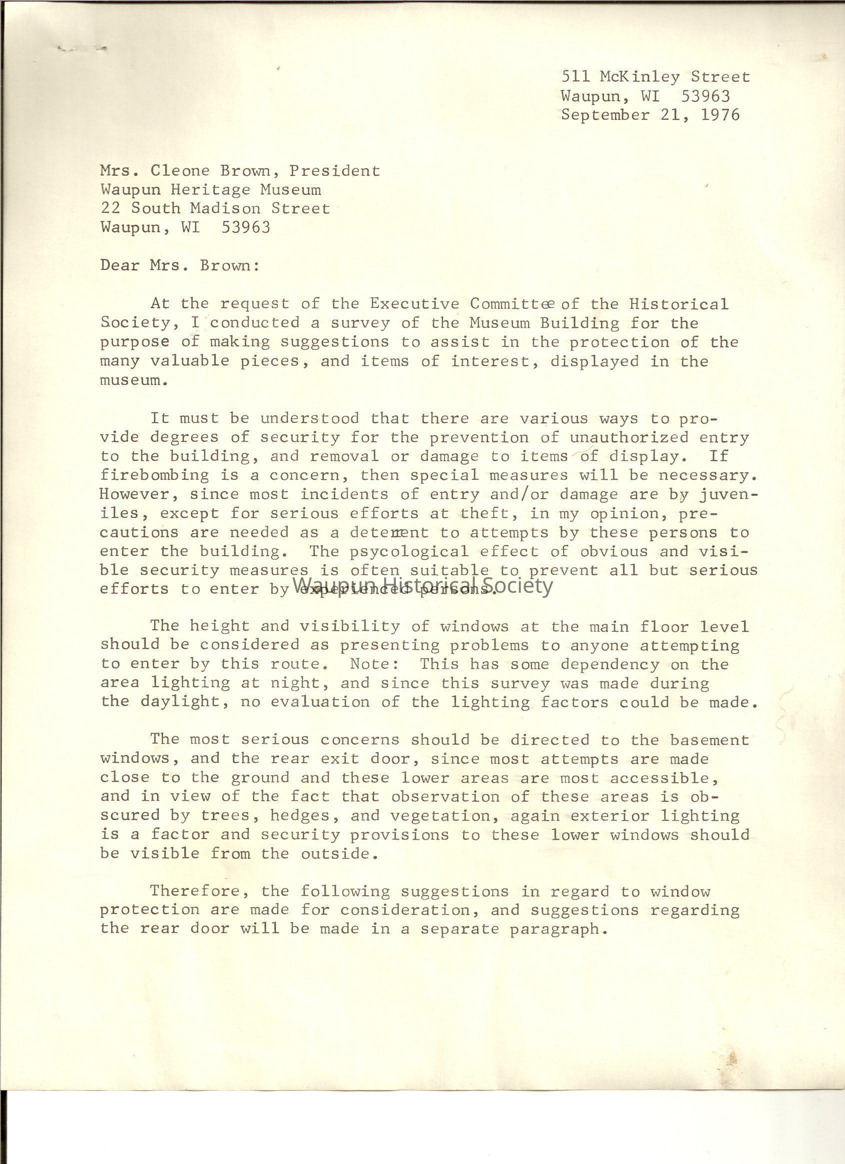 Waupun Historical Society, Heritage Museum 1977 BudgetsEntry/Object ID