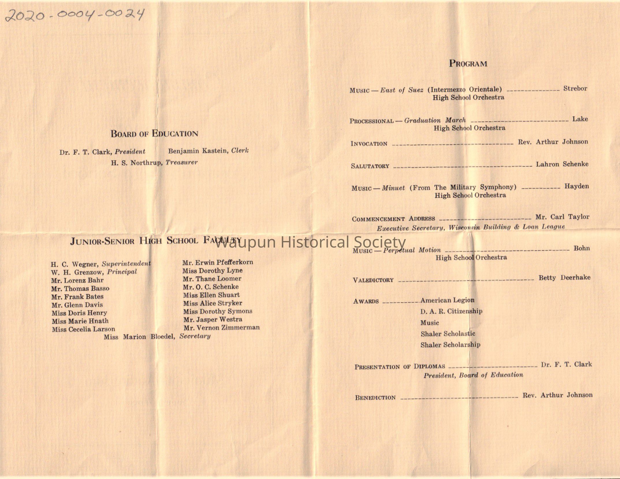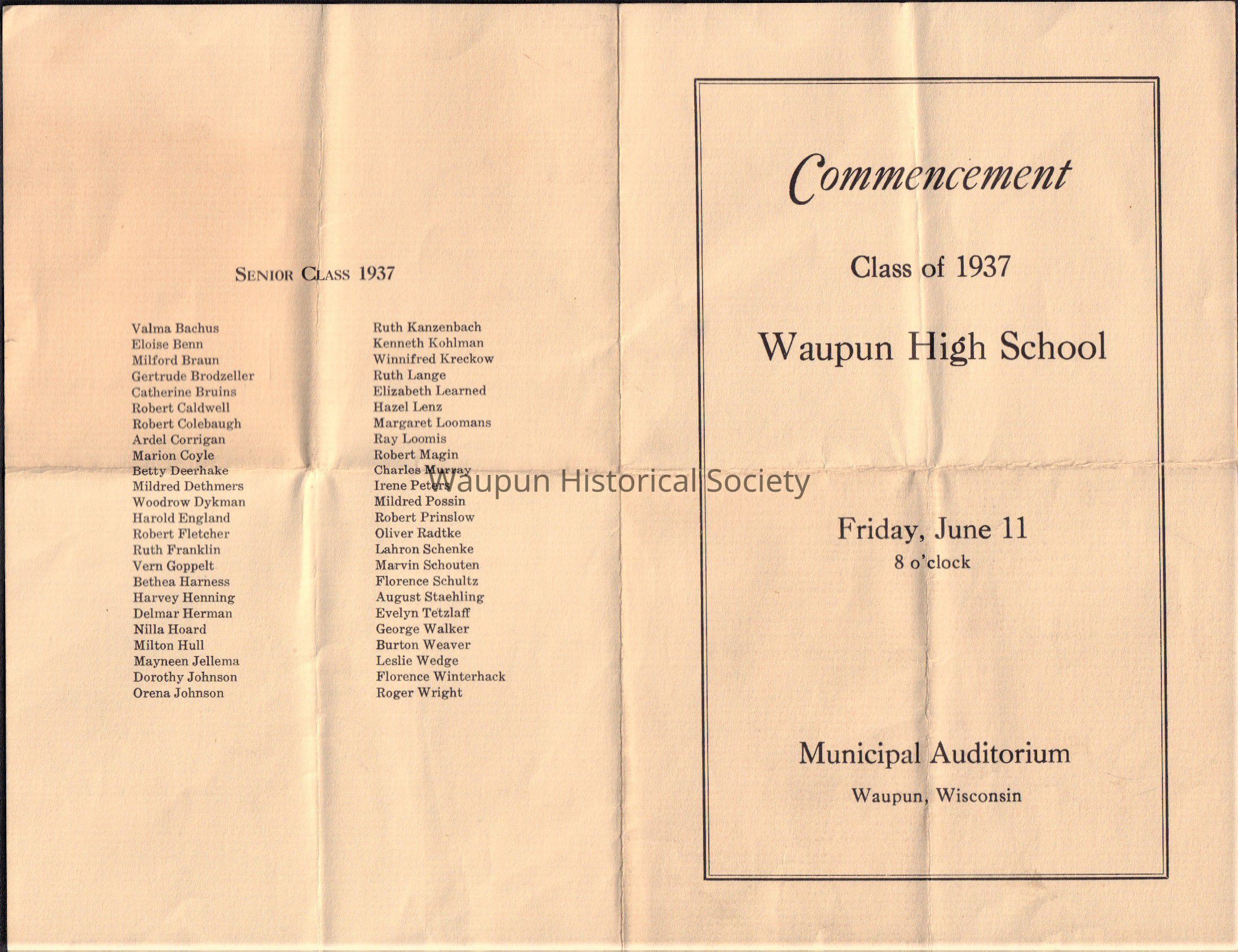 Waupun High School Class of 1937 Commencement (June 11 1937)Acquisition