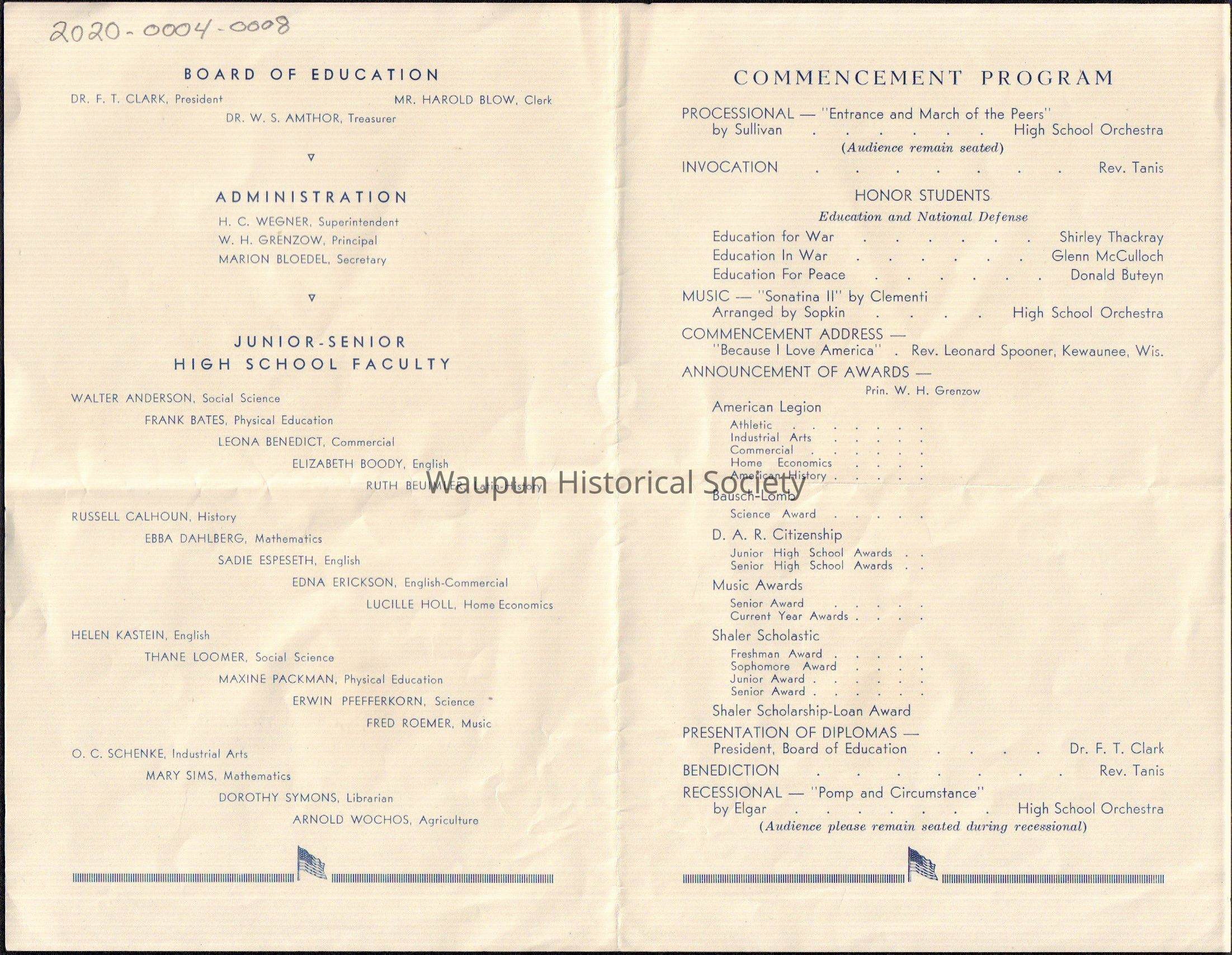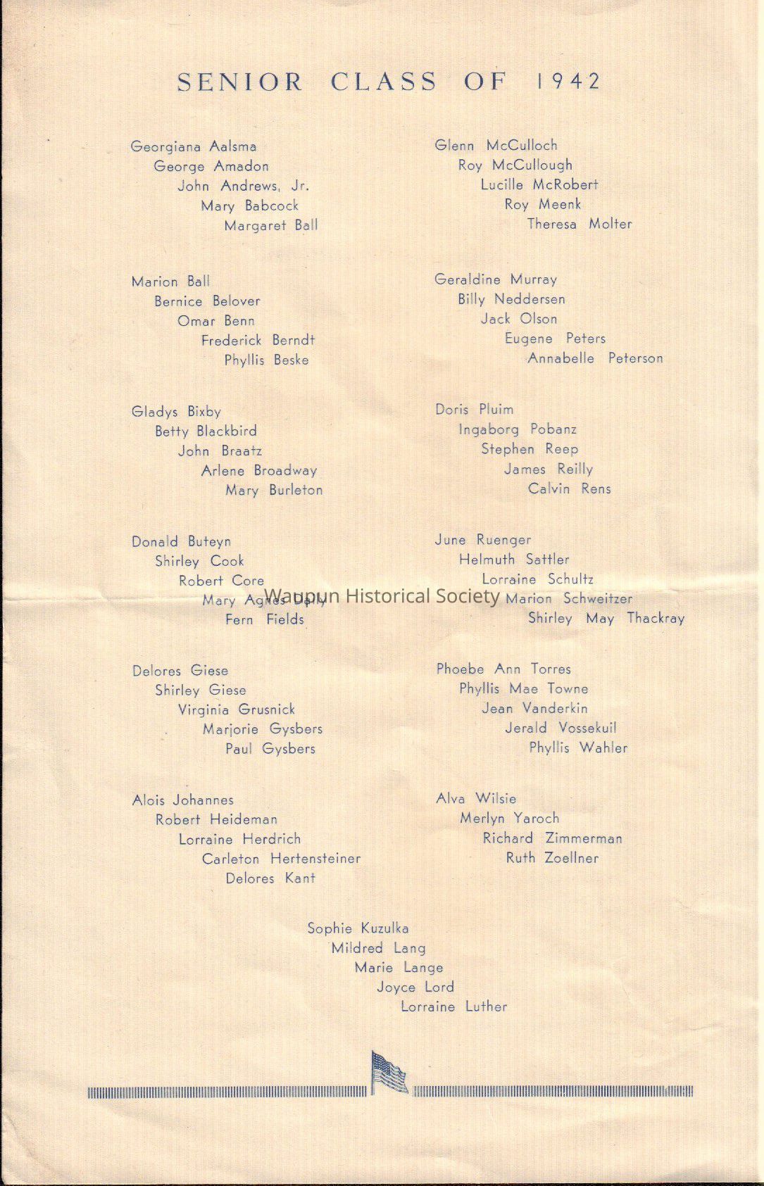 Waupun High School Class of 1942 (commencement May 29 1942)Acquisition