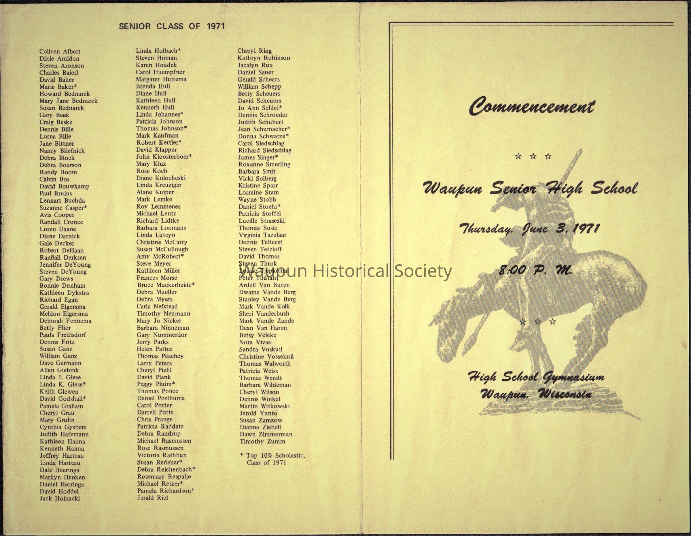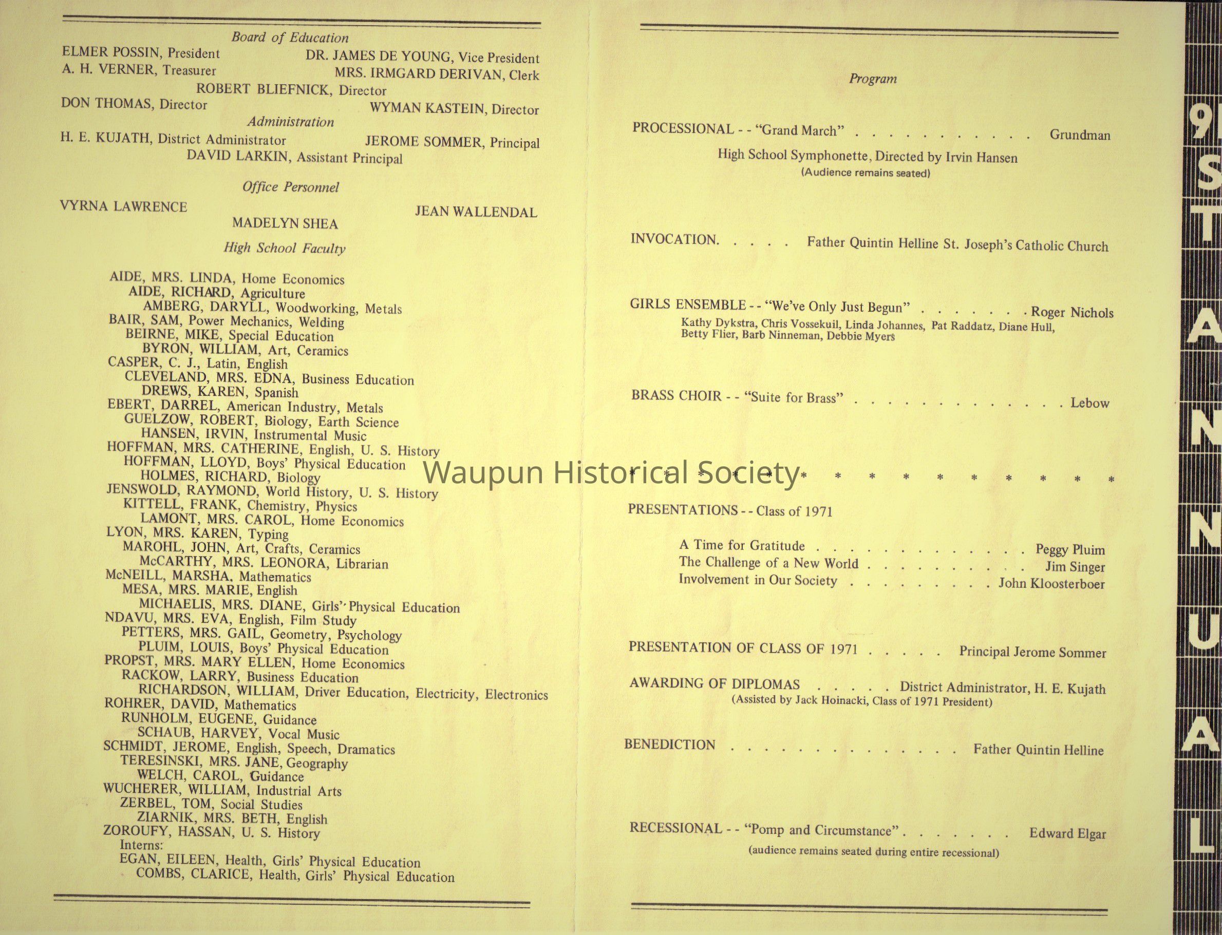 Waupun High School "Commencement" Class of (1971) June 3 1971Acquisition