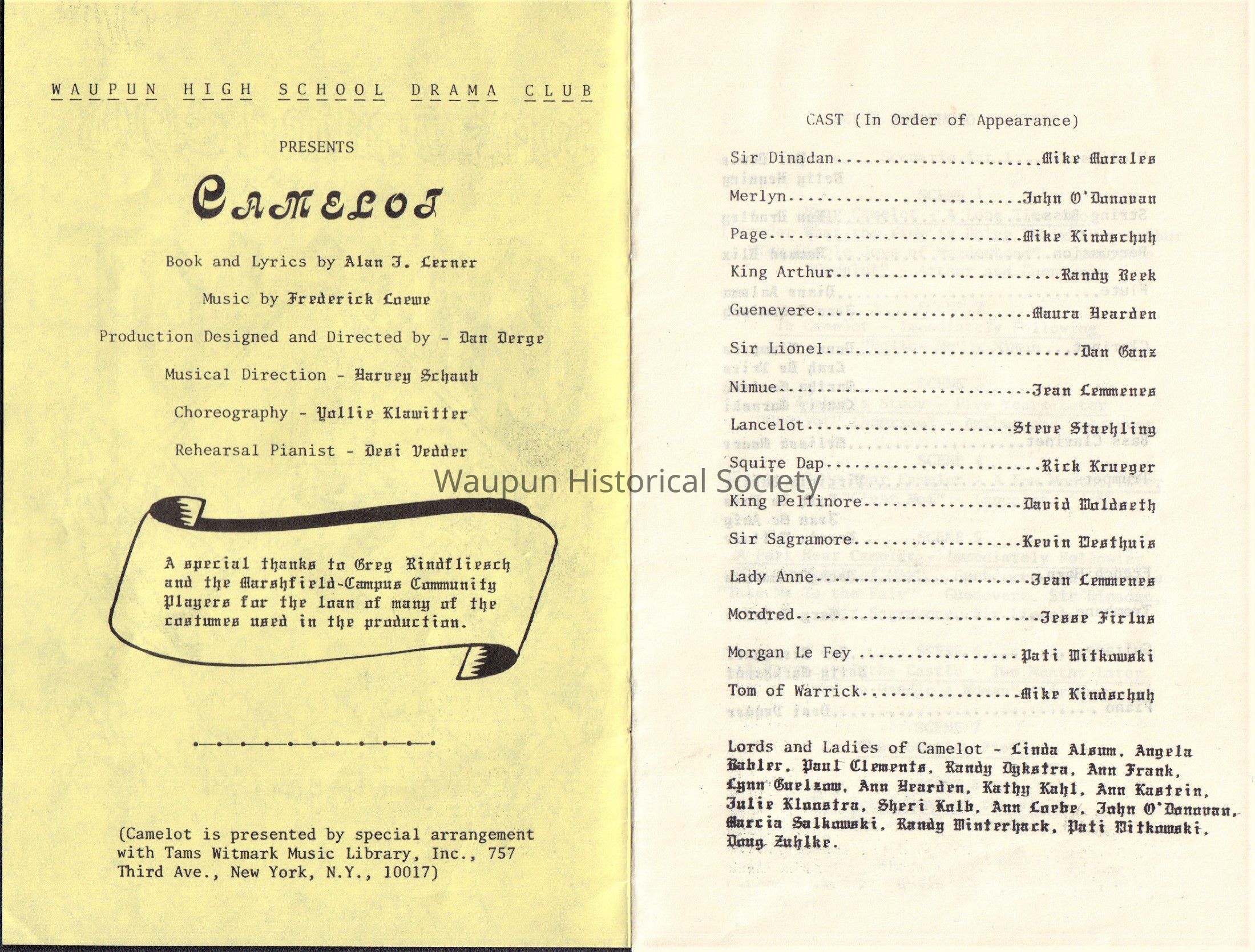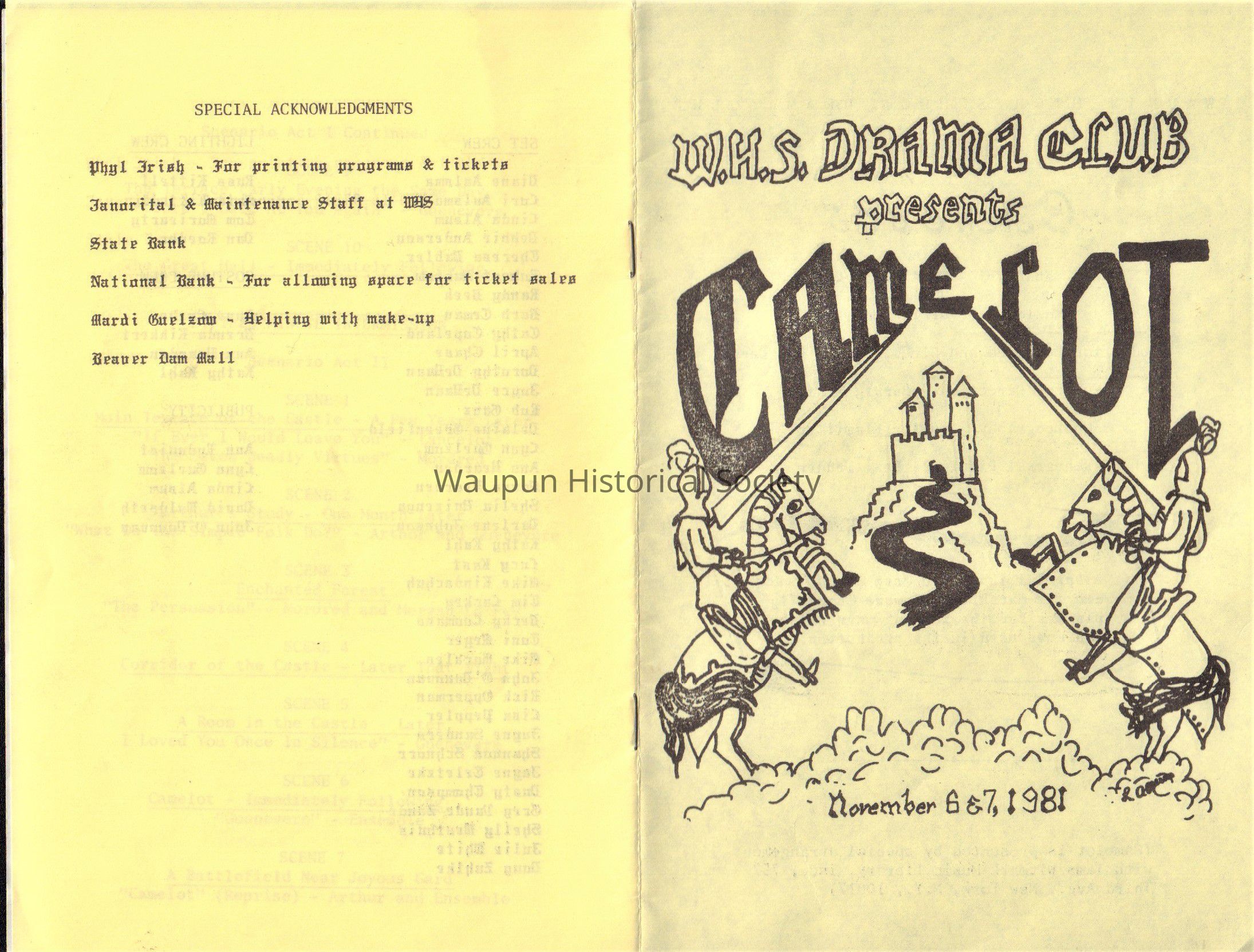 Waupun High School Drama Club "Camelot" (Nov 6&7 1981)Acquisition
