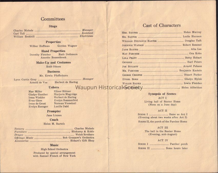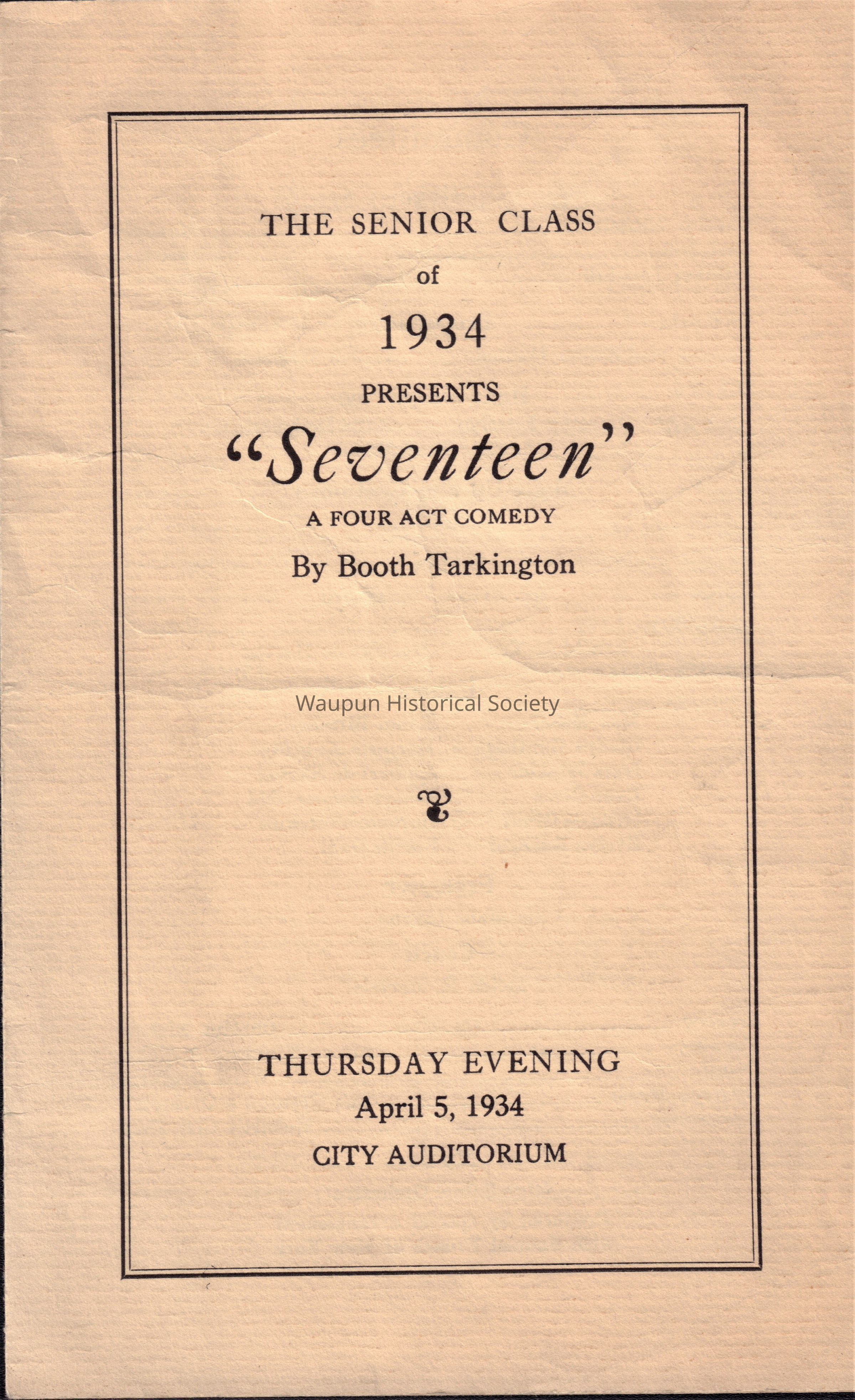 Waupun High School -Senior class of (1934) "Seventeen" A four Act ComedyEntry/Object ID
