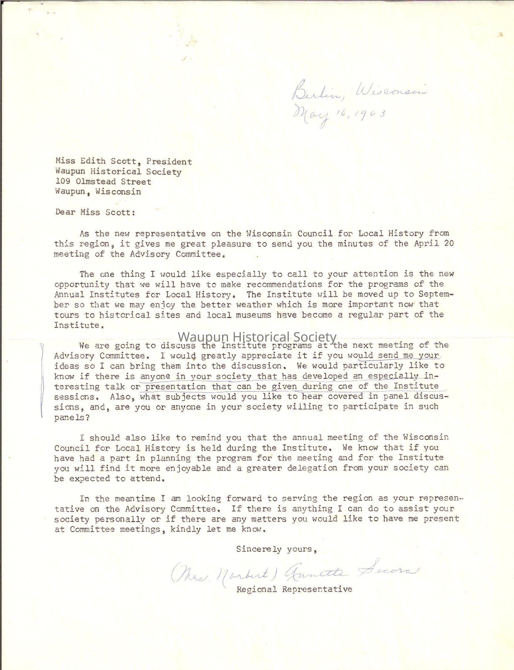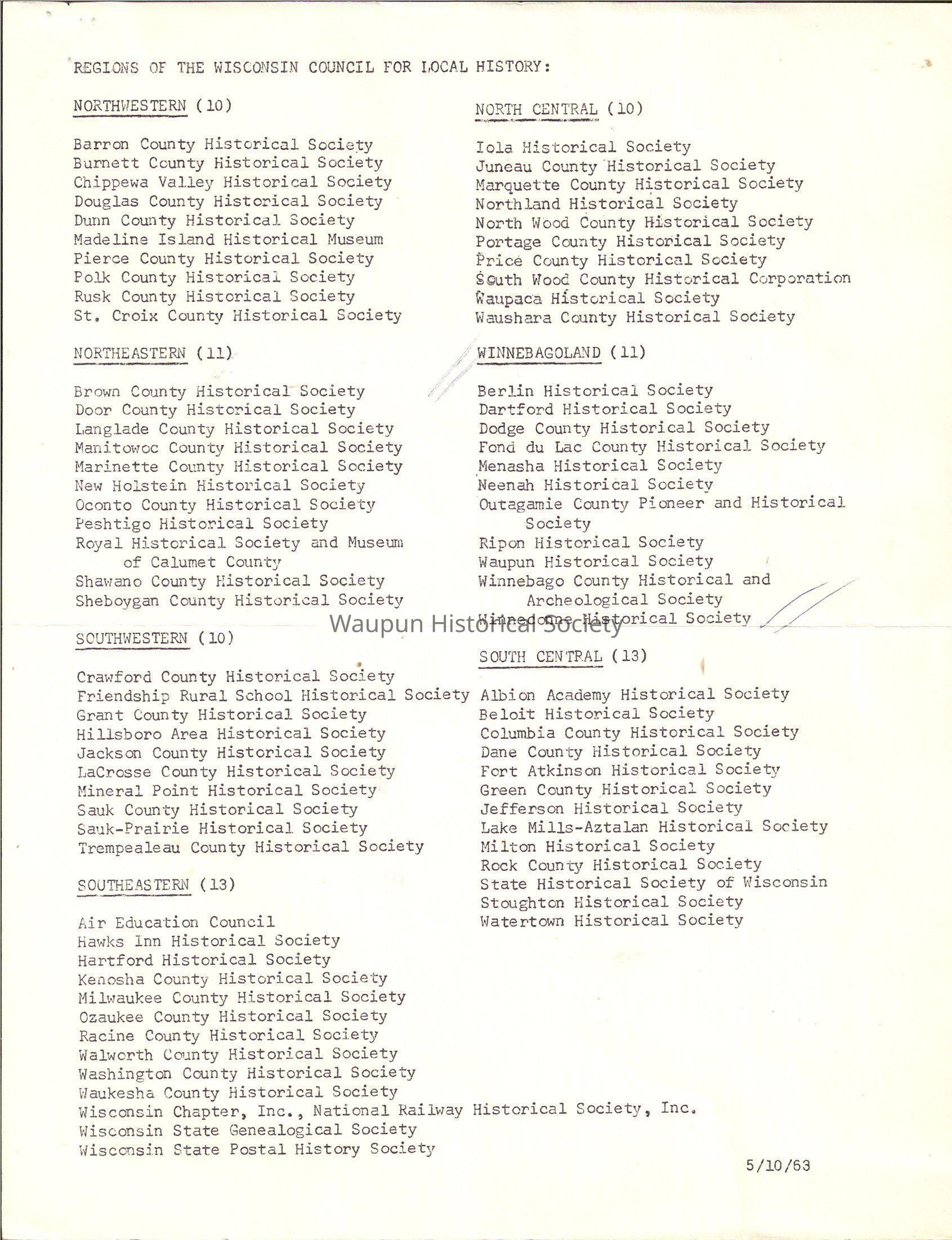 Waupun Historical Society, Annual Institutes for Local HistoryEntry/Object ID