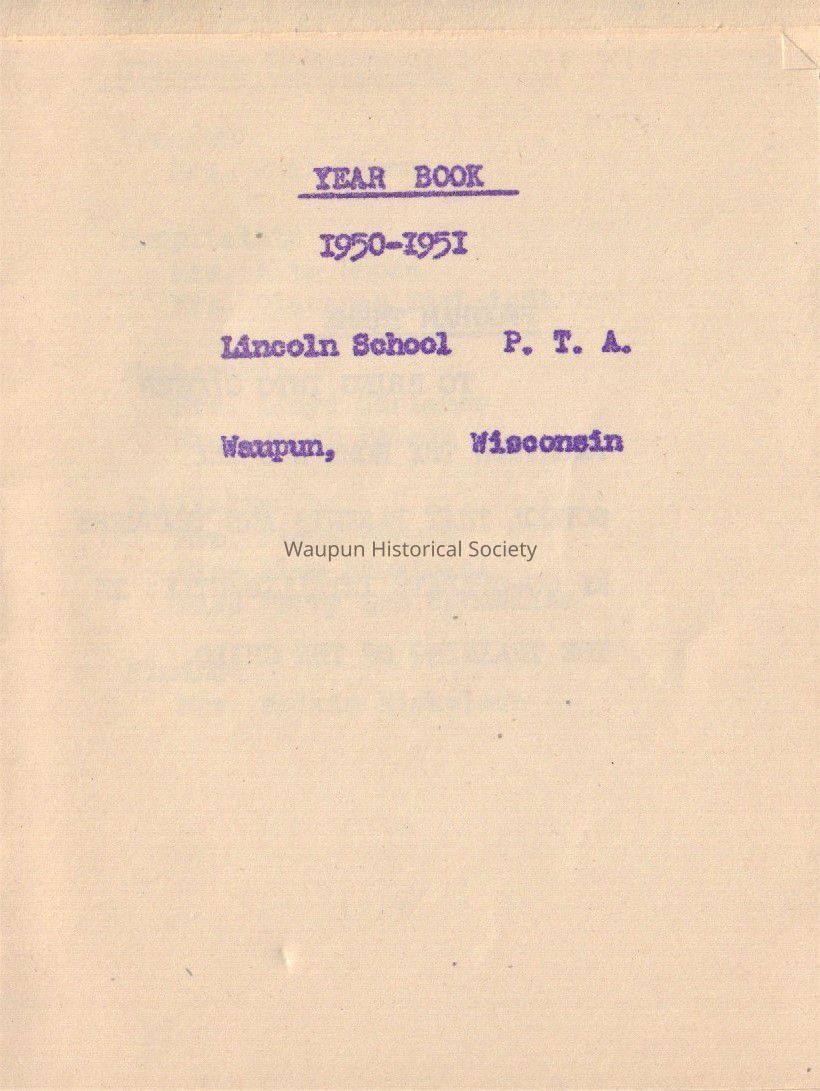 Waupun Lincoln School 1950-1951 P,T,A