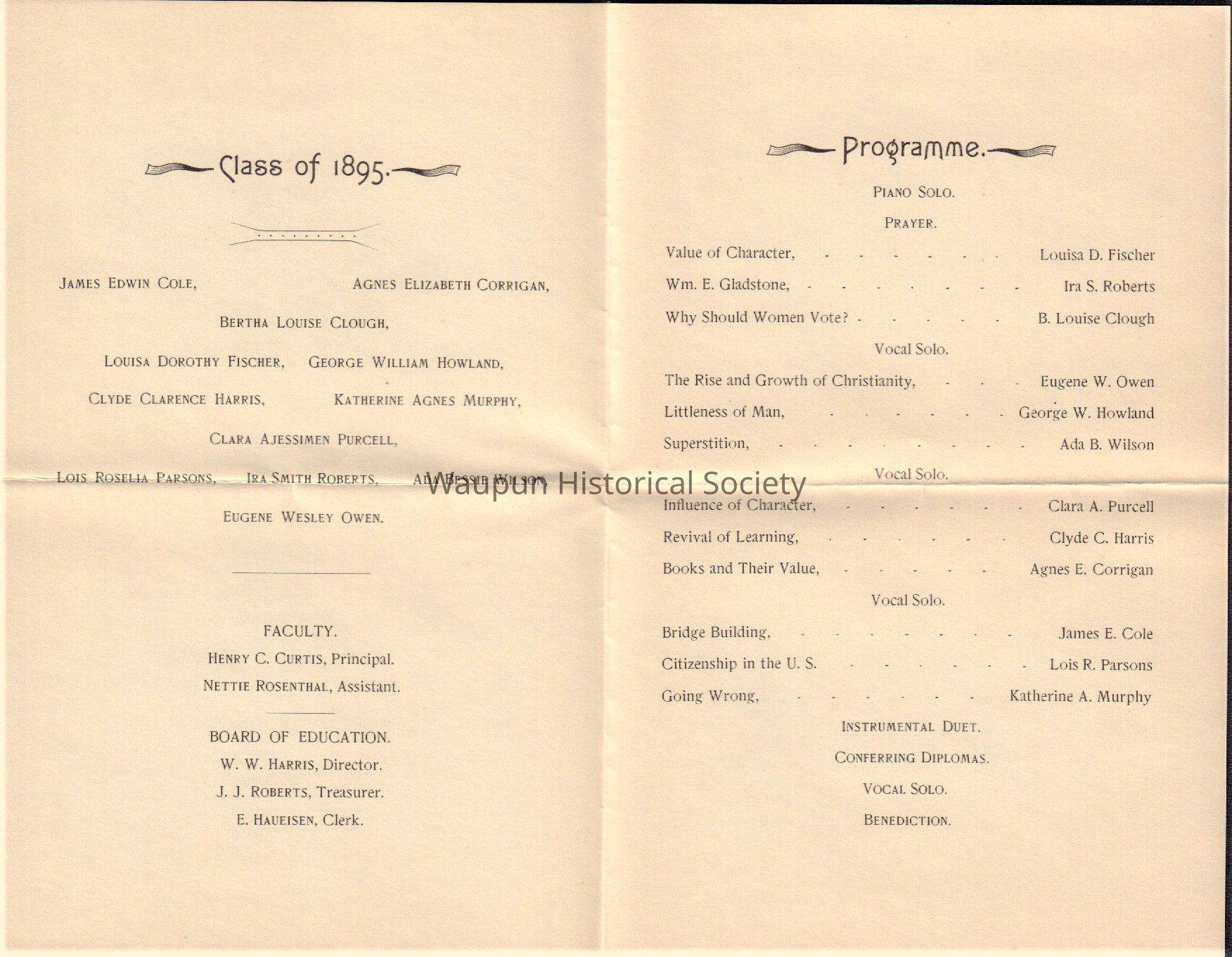 Waupun High School - North Ward High School - Class of 1895 Commencement (June 14 1895)Acquisition