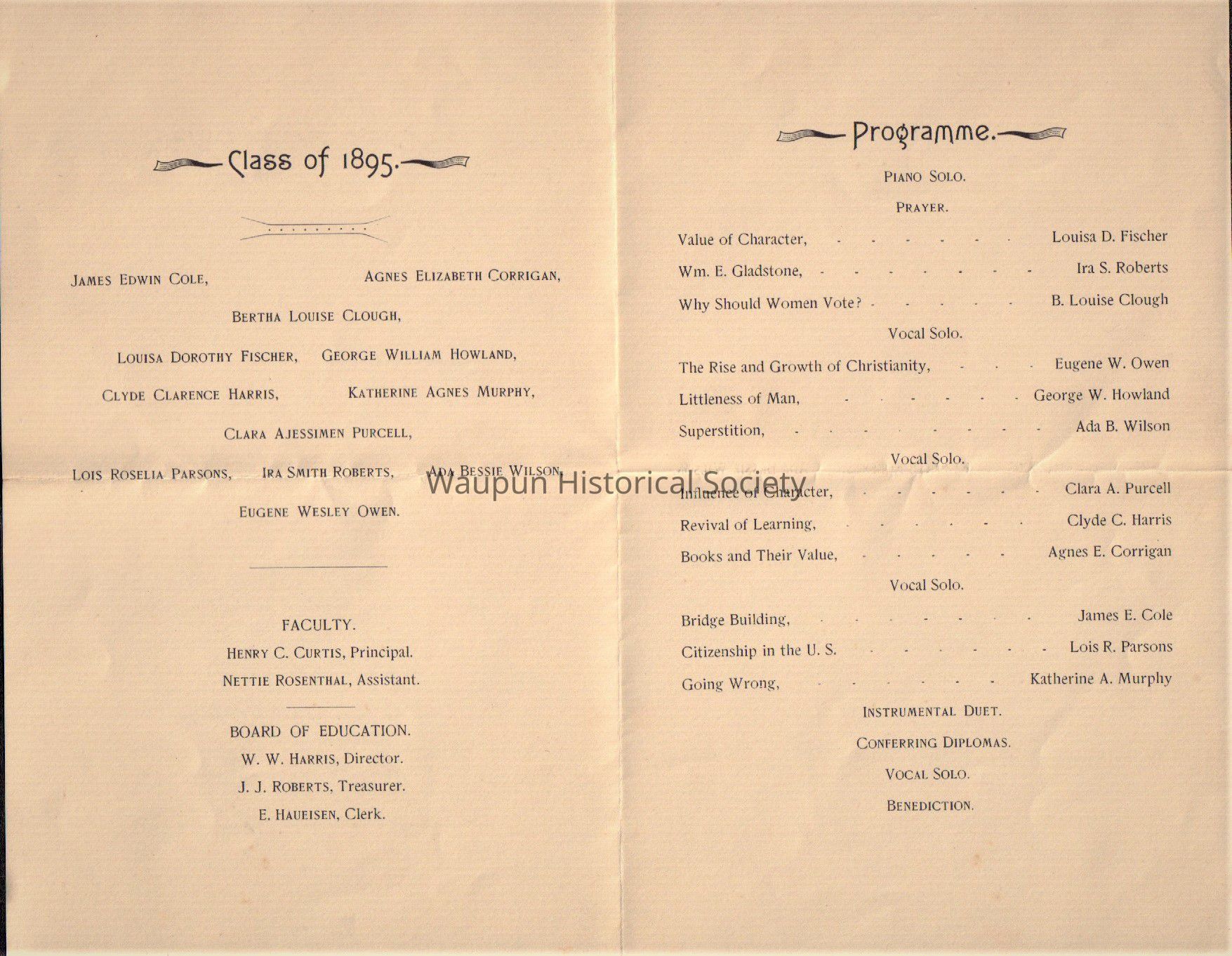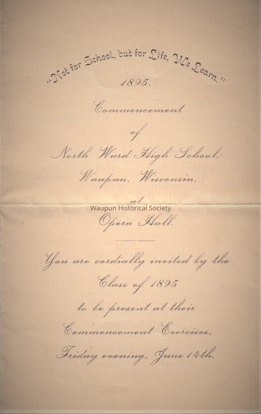 Waupun North Ward High School -Commencement Class of 1895Acquisition
