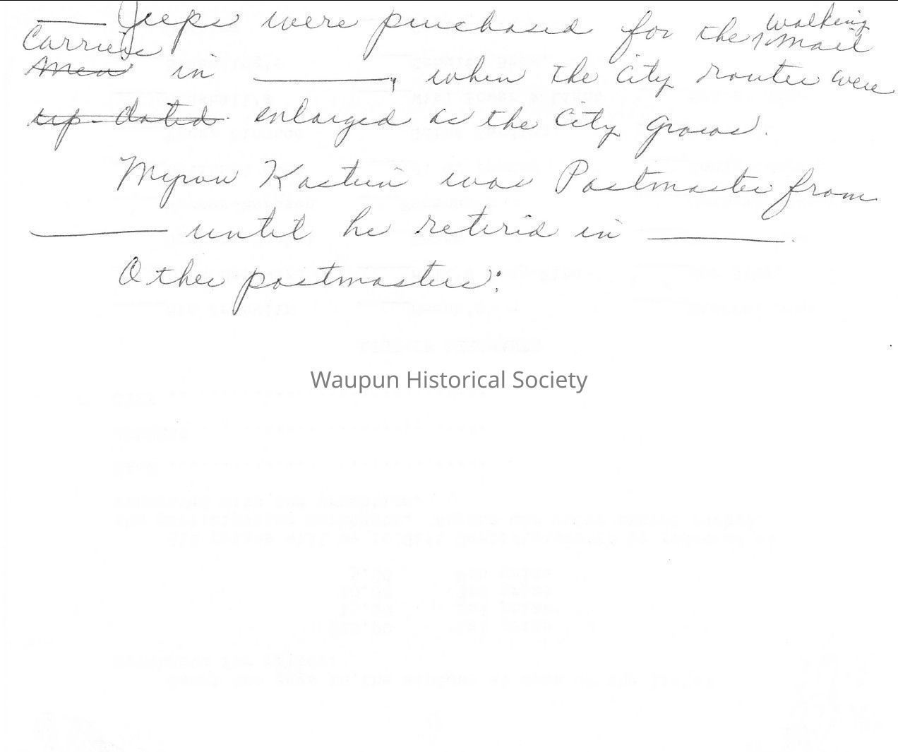 Historical information on Waupun Post Office for 1976 Bicentennial Celebration in Waupun, WI.