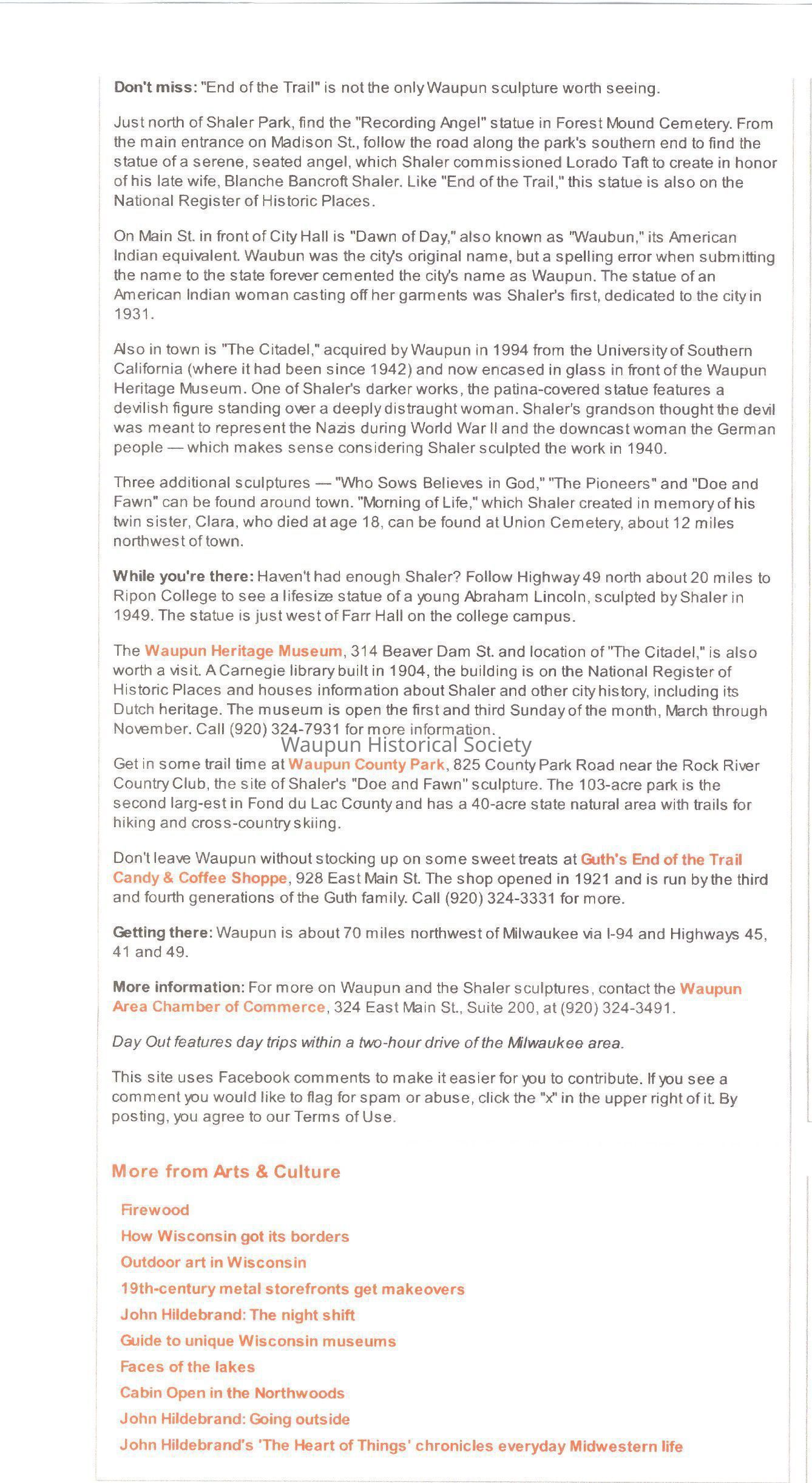 Don't miss: "End of the Trail" is not the only Waupun sculpture worth seeing.