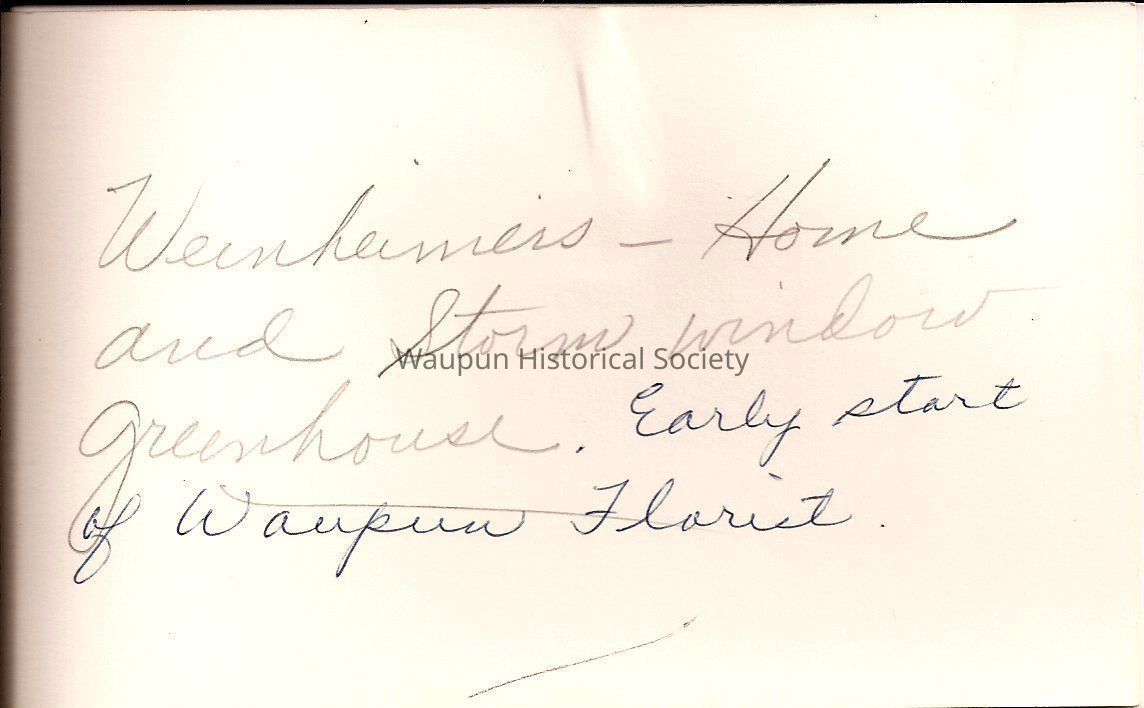 Business Histories, Weinheimers-Waupun FloristEntry/Object ID